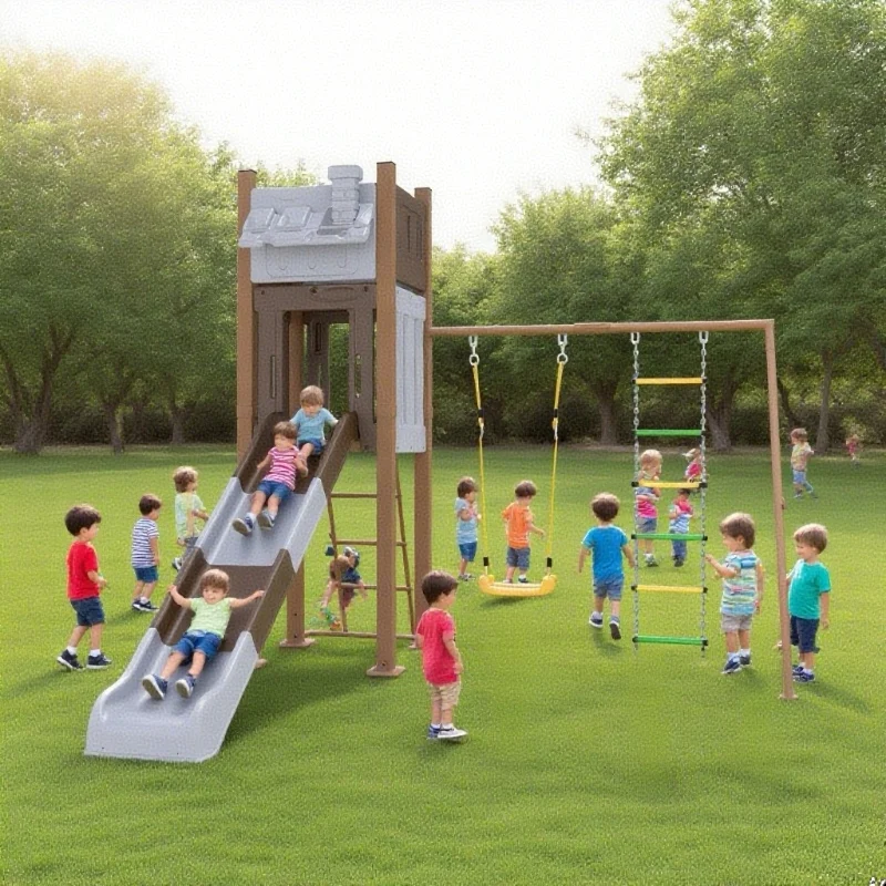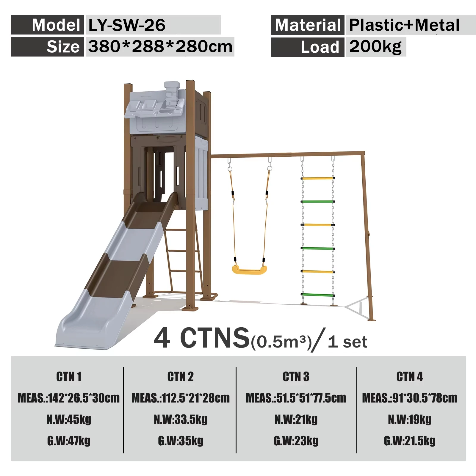 High Quality Kids Outdoor Playground Toys Plastic Mental Slide and Swing for Children Climbing Function Play House for Kids