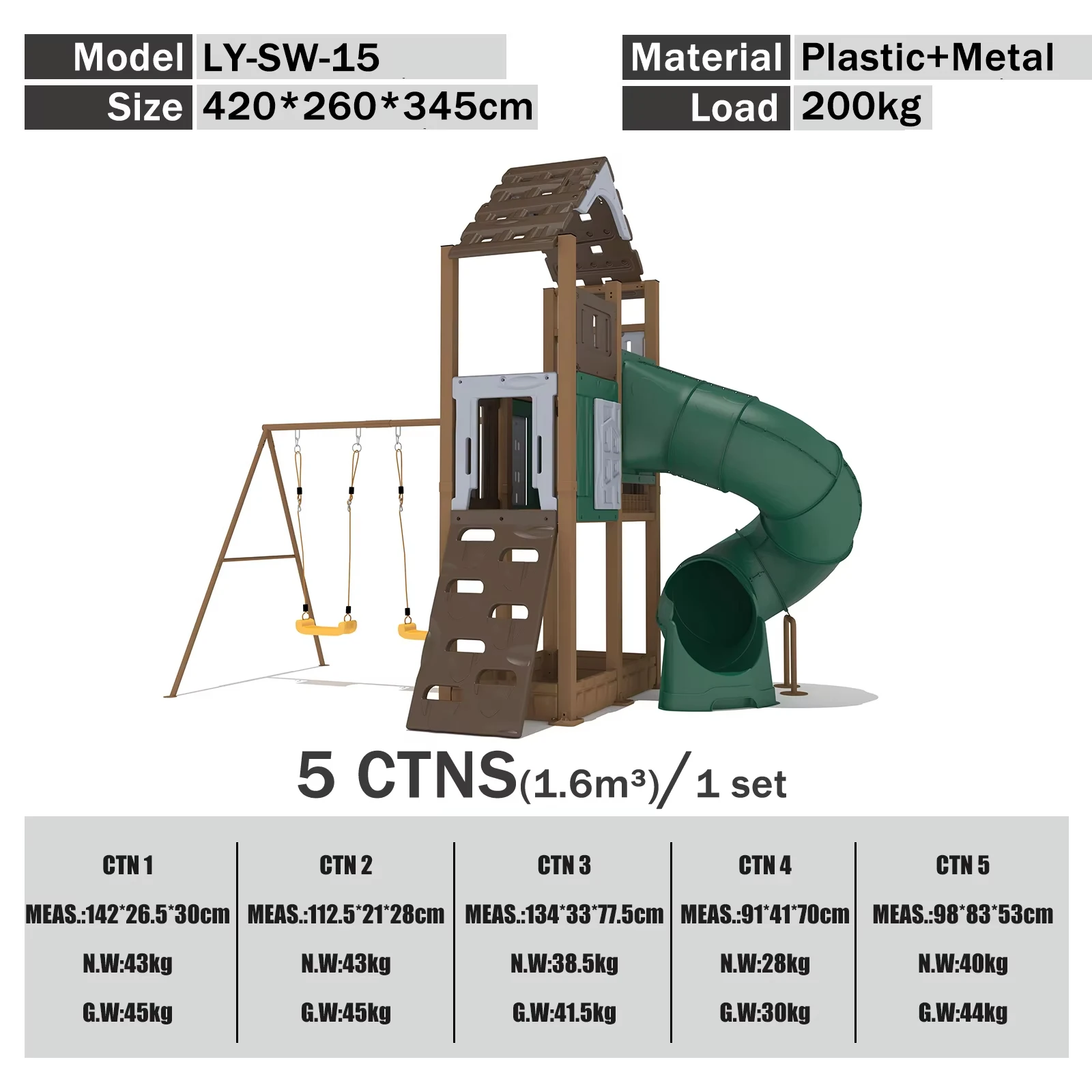 High Quality Weather Resistant Swing Slide Set for Backyard School Made Metal Tube Plastic Slide for Home Playhouse Trampoline