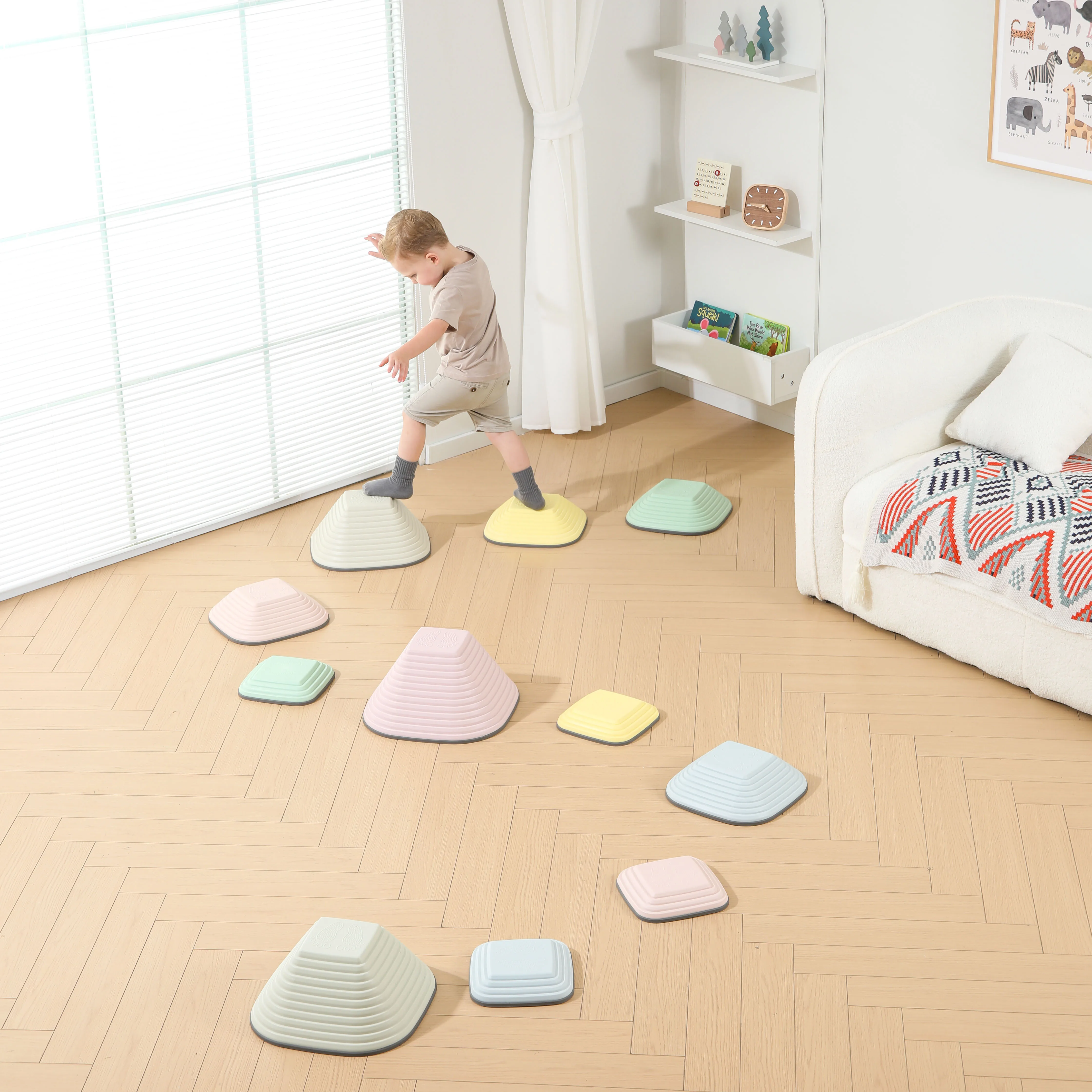 Kids Fun Toys 9 Pcs Durable Macaron Color square Autism Stepping Stone for Kids Playground Indoor Balance Toy