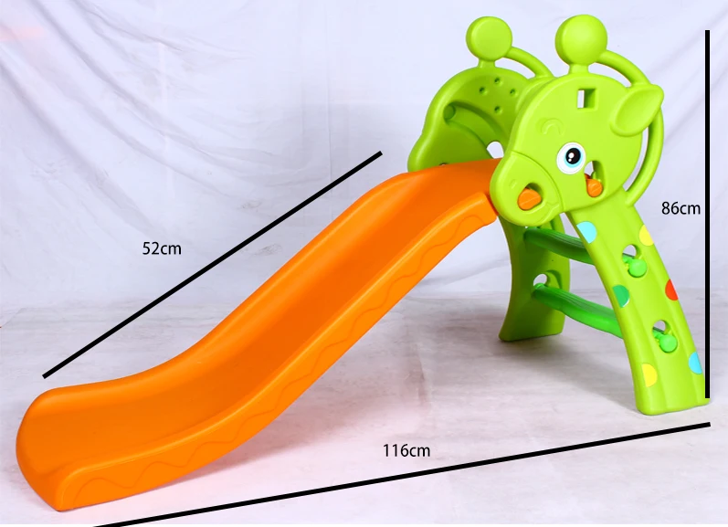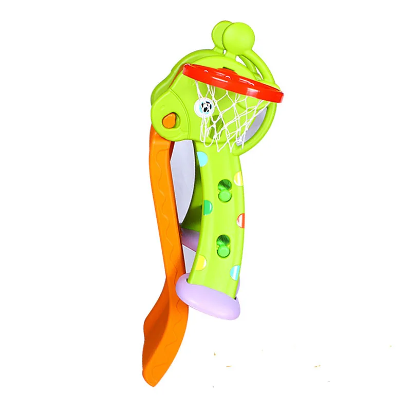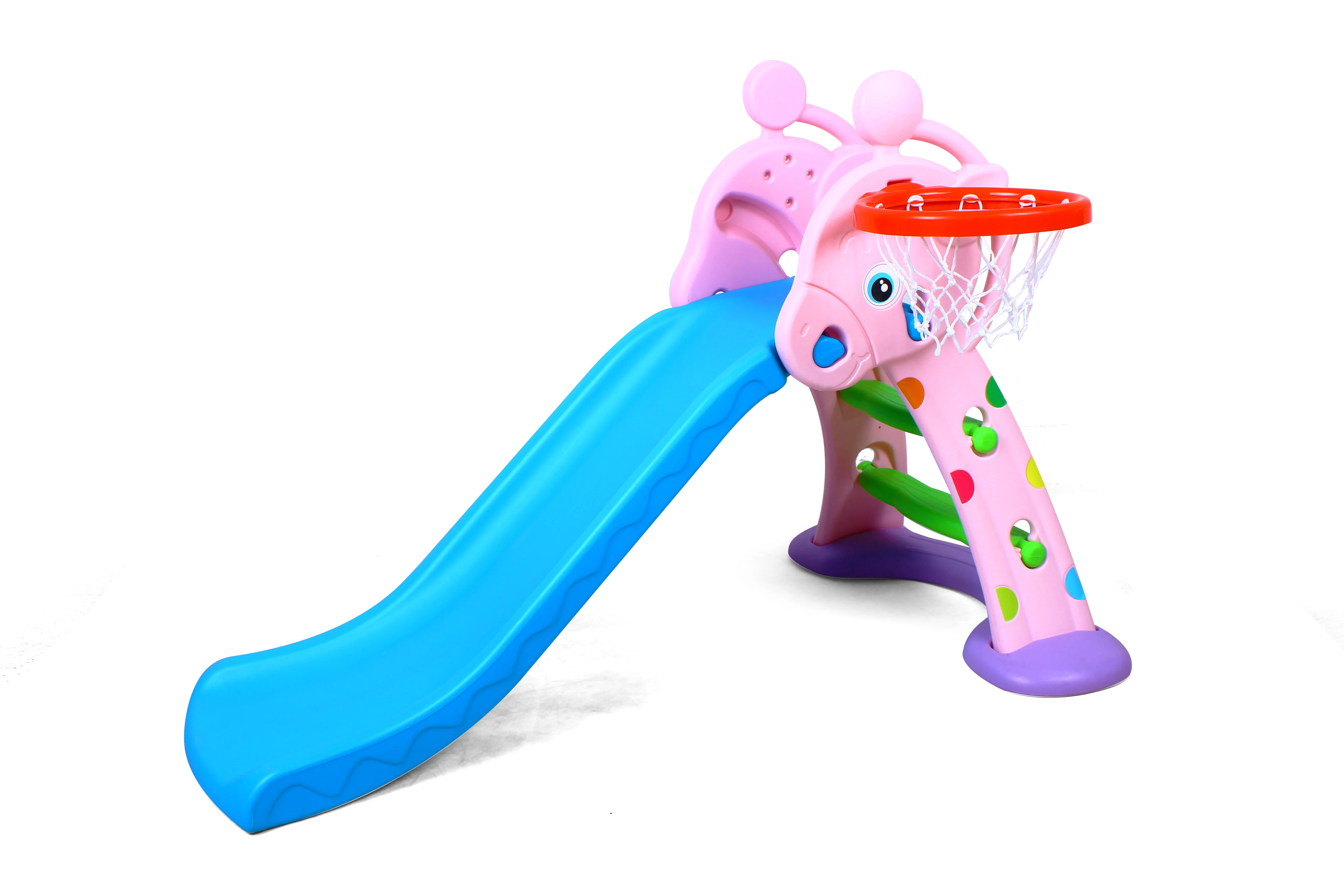 Cheap Price Deer Design Daycare Plastic Folding Toddle Slide Small Simple Indoor Home Plastic Slide and Basketball Hoop Set
