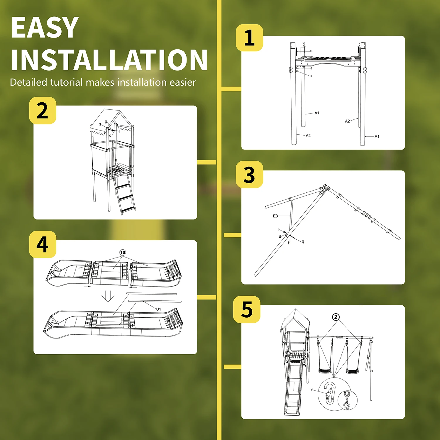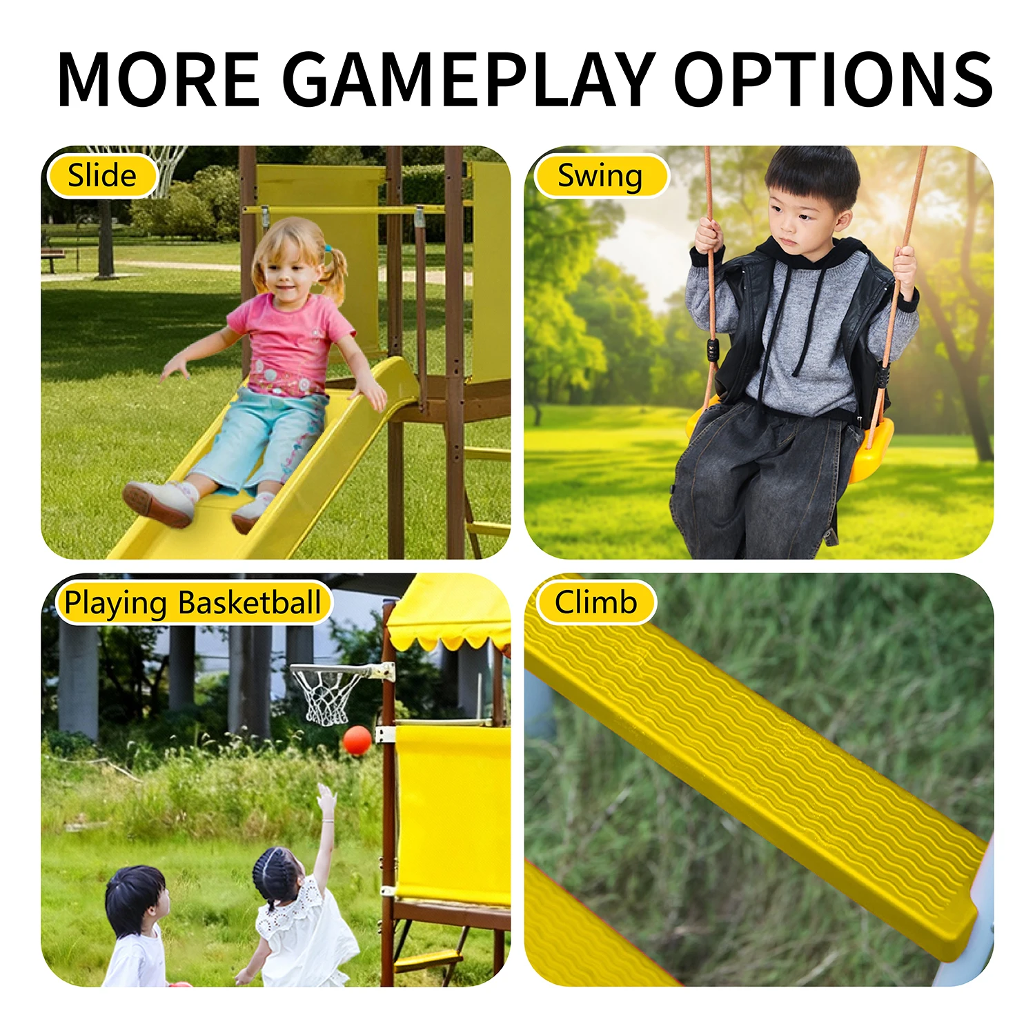 Kids Family Slide Plastic Swing Set Adjustable Swings Outdoor Slide Playground Backyard Play Set Play House for Kids
