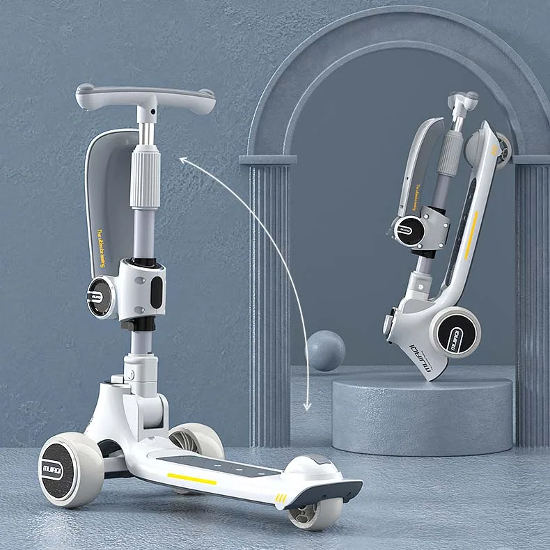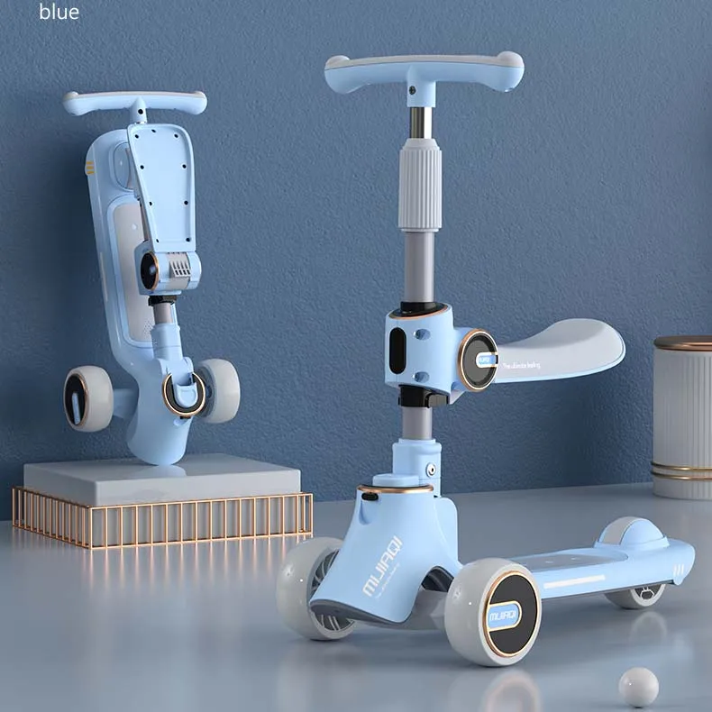 Scooter 3 En 1 Kids Scooter 3 Wheel Pu Kids Led Scooter for Kids Boys and Girl With Seat Music Bluetooth Rear Wheel Brake