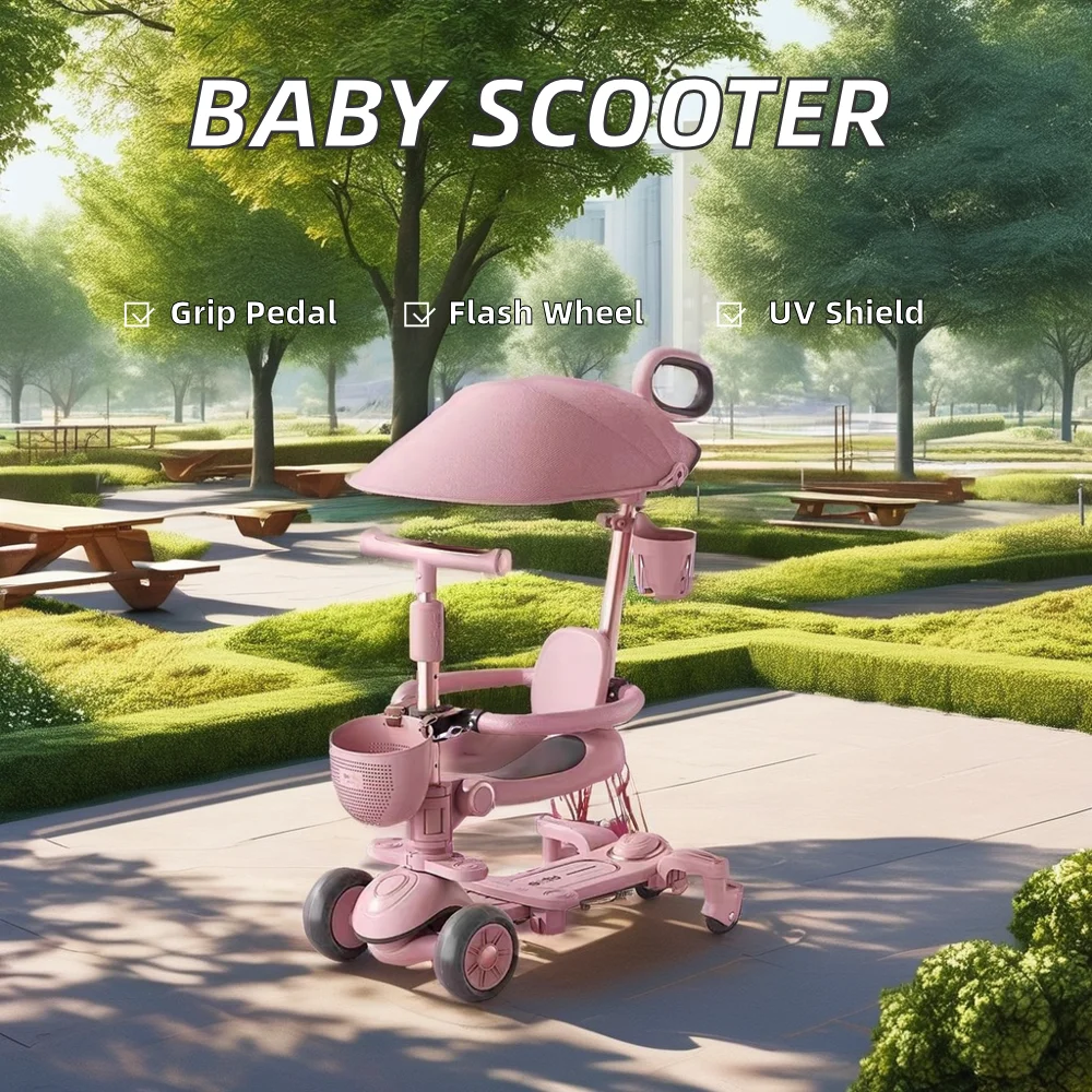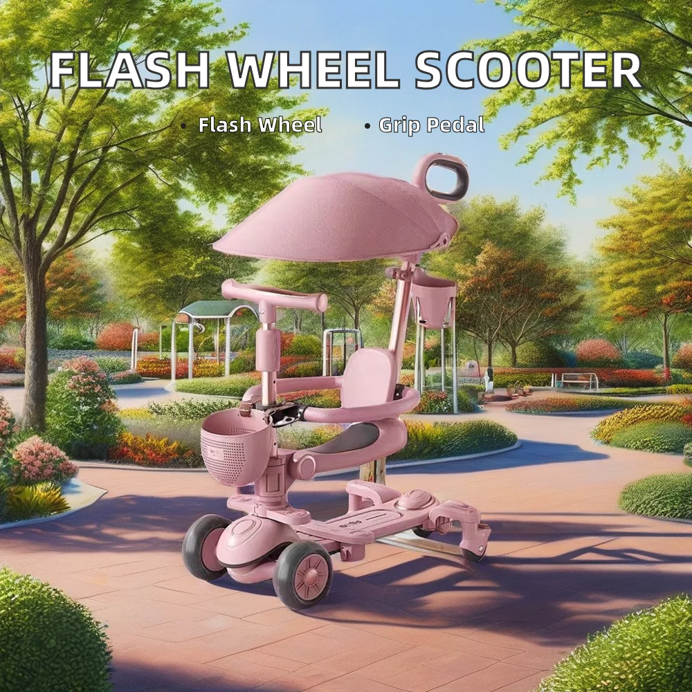 Alloy Baby Scooter Anti-Slip Pedal PU Flash Wheel Simulated Leather Guardrail Plastic Toy Ride-On Car Children Similar Real Car