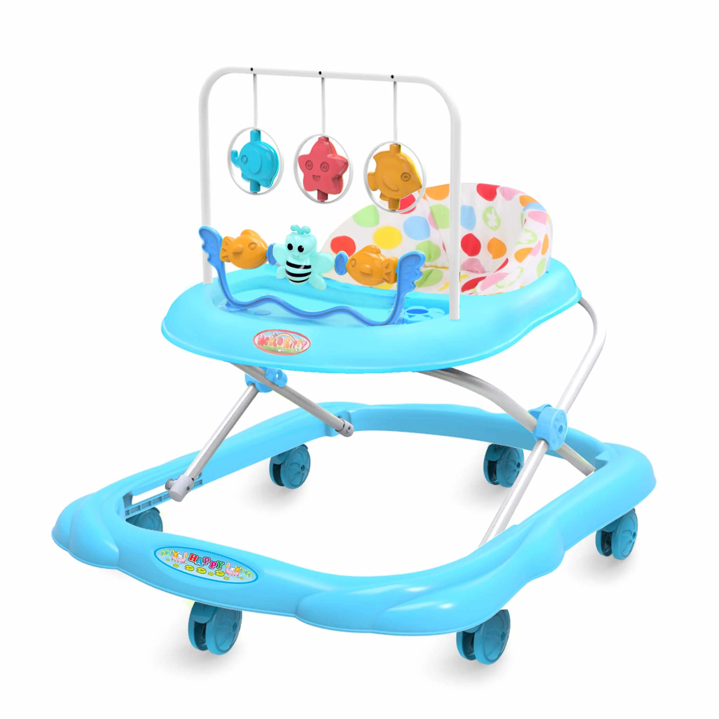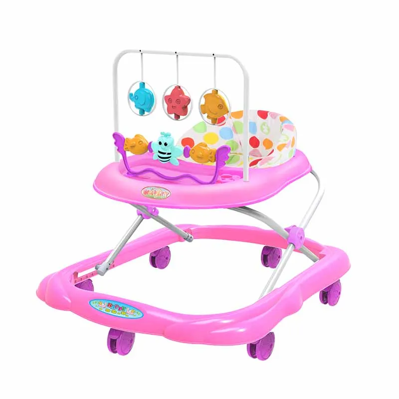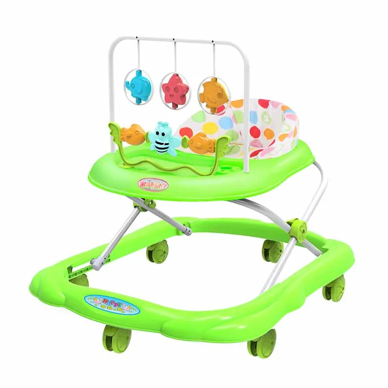 Cheap Plastic Folding Baby Walker with Big Rubber Wheels Fabric Seat Three-Gear Height Adjustment China Features Music Learning