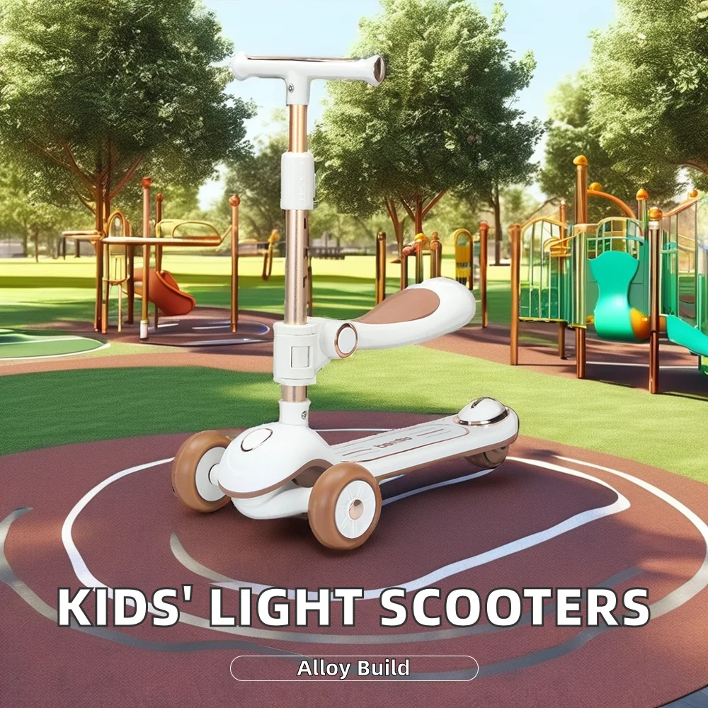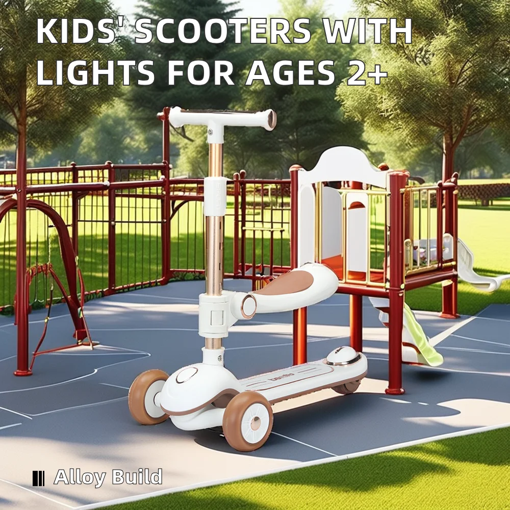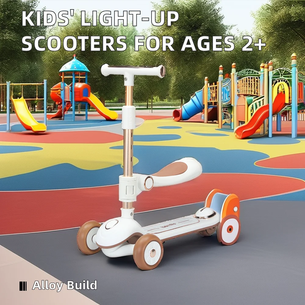 Aluminum Kick Scooter for 2-Year-Olds Kids Folding Skateboard Wheels (PU) with Lights