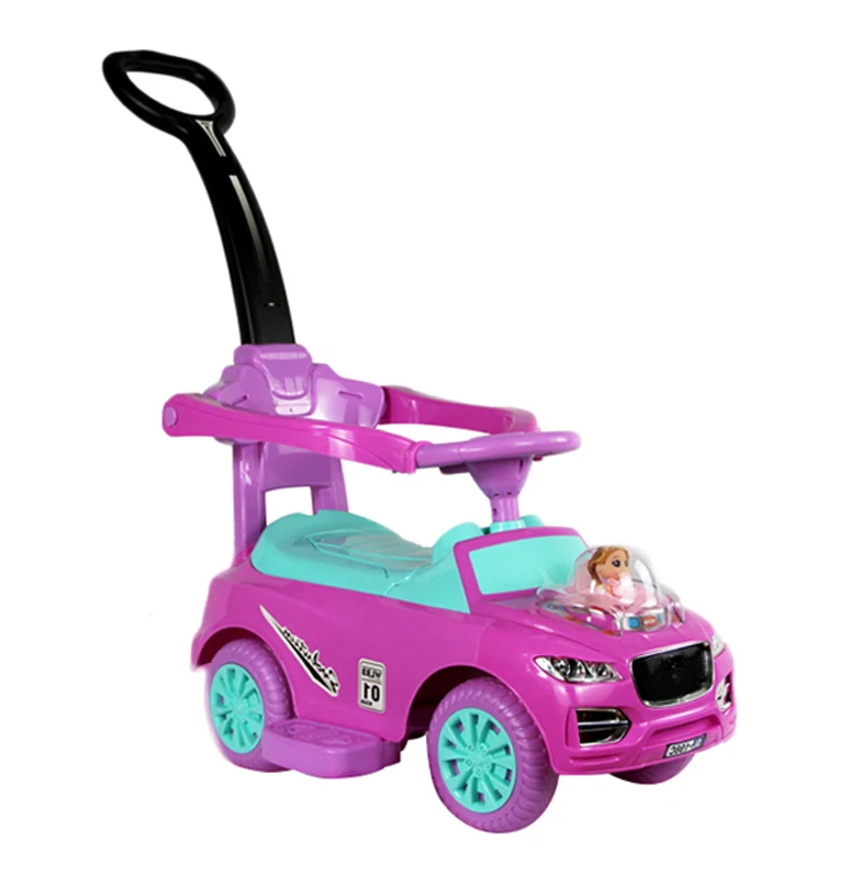 Plastic Coche Columpio Para Ninos 4-Wheel Ride-on Toy with Foot-to-Sole Pushing Mechanism and Hand Push Handle