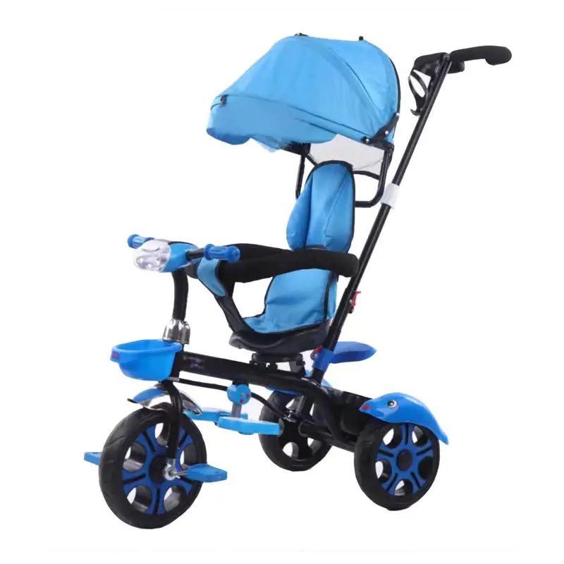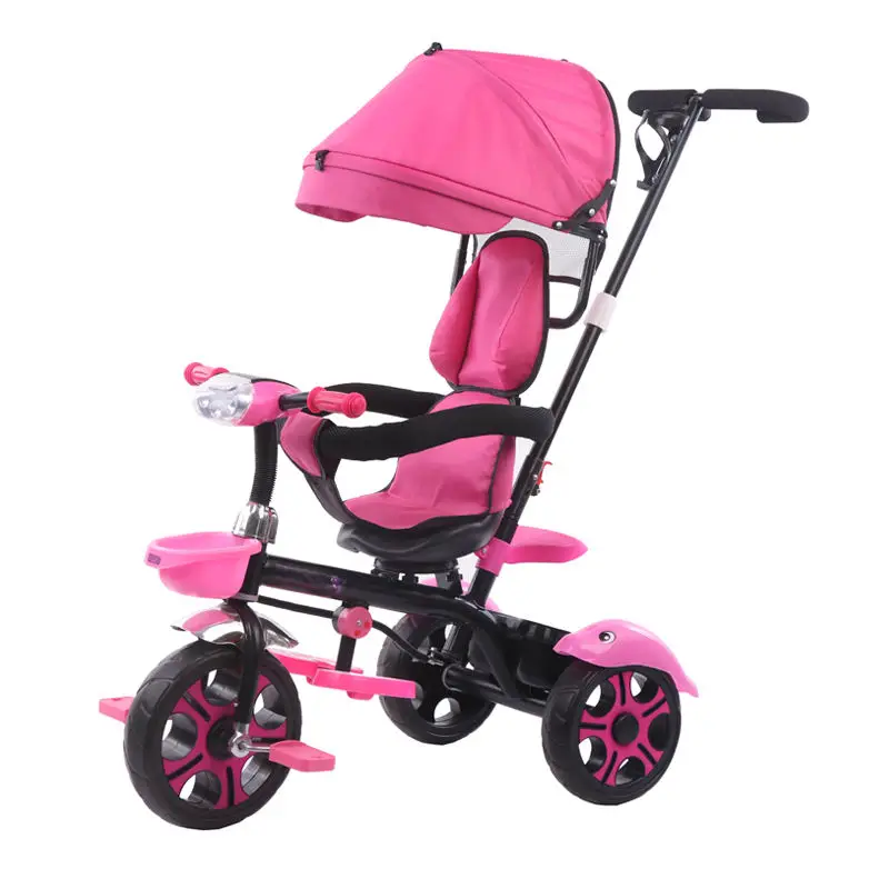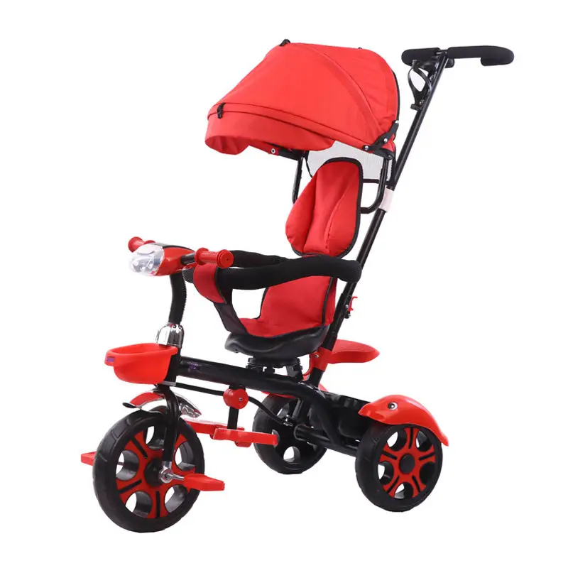 Kids Little Car Tricycle with Front Light Push Bar Canopy Made of Durable Plastic