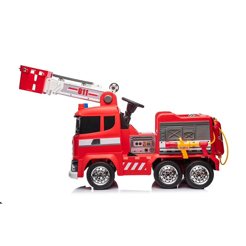 2.4G RC Battery Operated Electric Tractor & Fire Truck Controllable Sprinkler for Boys Aged 2-4 Years Plastic Car Ride for Kids