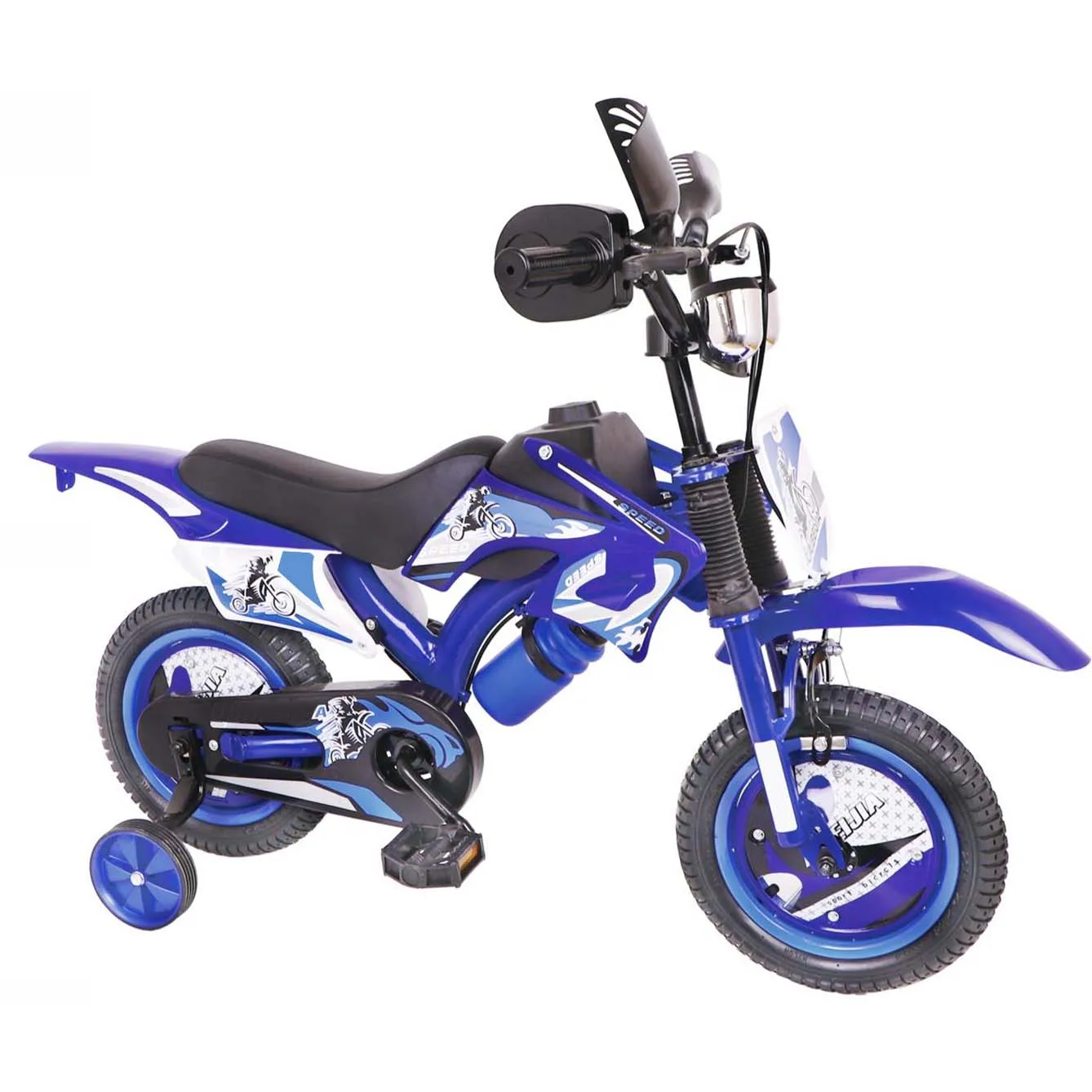 Durable Plastic 4-Wheel Children's Bicycle with Suspension Fork Motorcycle Style for Kids 2-7 Years