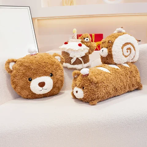 Teddy Bear Pillow Swiss Roll Cake Plush