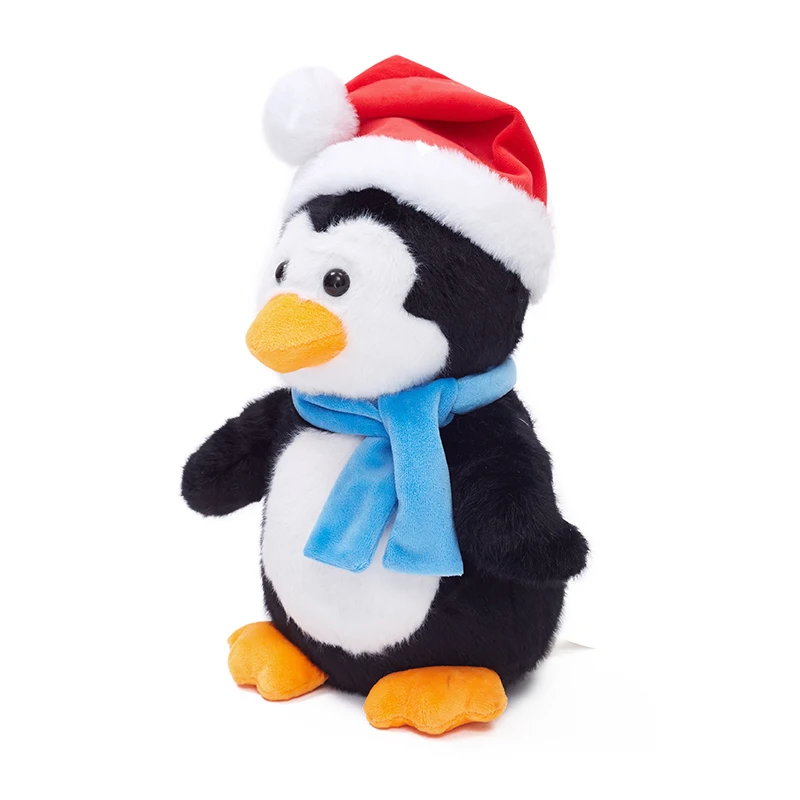 Custom Christmas Day Plush Penguin Toy Stuffed Penguin Animal Doll with Hat and Scarf
