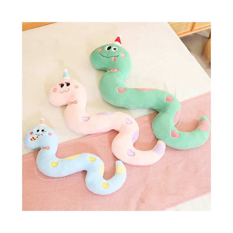 New Year Mascot Plush Snake 60CM 80CM 100CM Pink Green Blue Pillow Plush Snake Toy