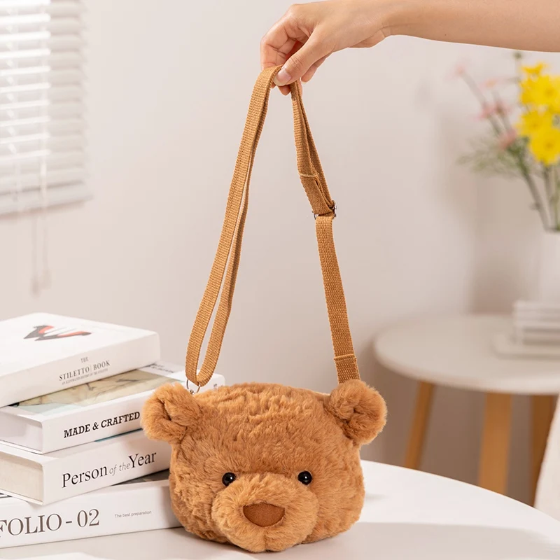 Cute Teddy Bear Plush Shoulder Bag Hot Selling Teddy Bear Head Backpack Crossbody Bag Children's Gift High Beauty Zero Wallet