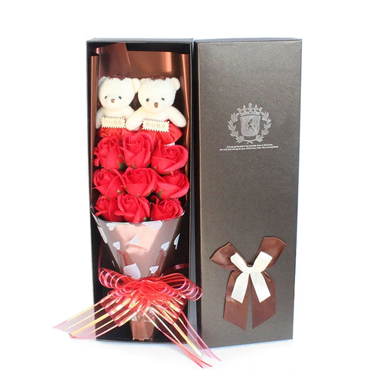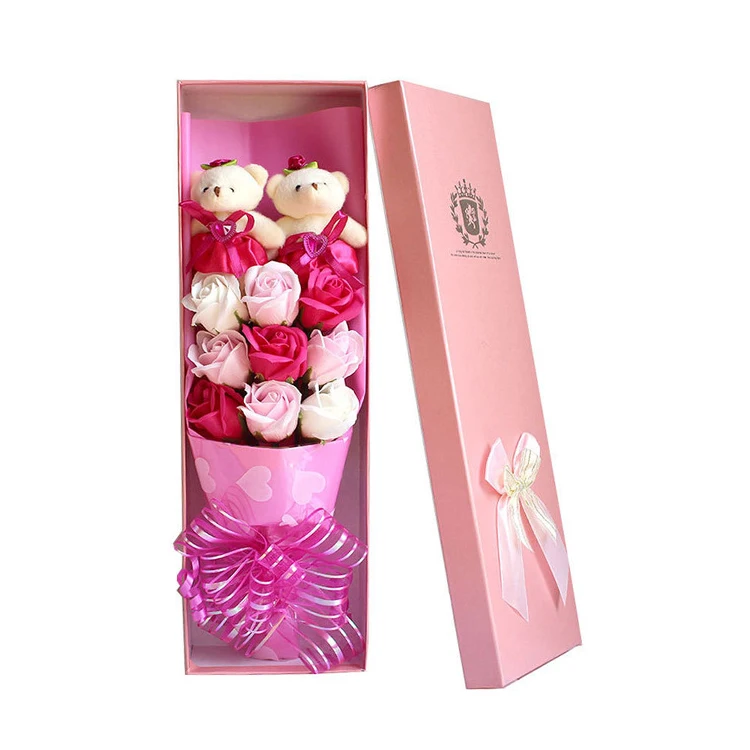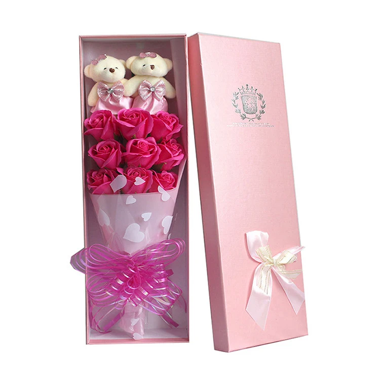 High Quality Mothers Day Rose Flowers Bouquet Gift Box Bear Red Rose for Valentines Day Gift