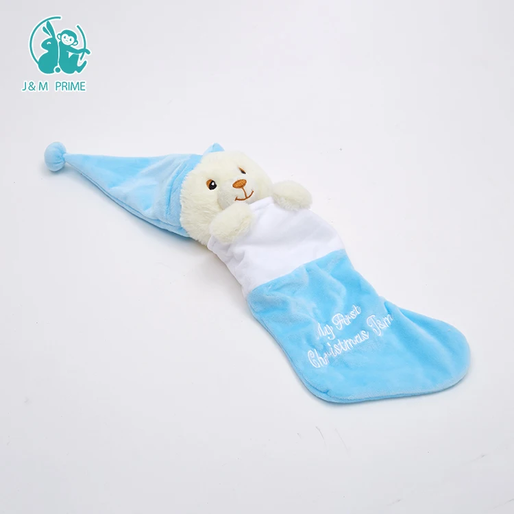 Teddy Bear Christmas Stocking Plush Stuffed Teddy Bear Head Decoration Plush Animal Head Christmas Stocking