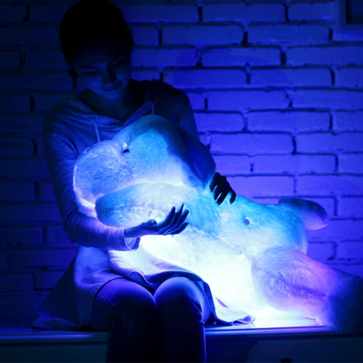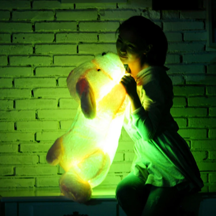 Colorful LED Stuffed Plush Cushion Dog Plush Pillow Light-up Toys Puppy Light up Plush Toy Christmas Gifts for Toddlers