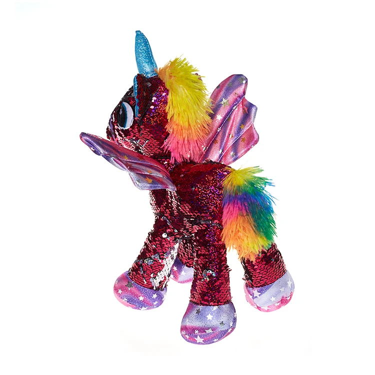 New Design Reversible Sequin Stuffed Large Rainbow Plush Unicorn Toy