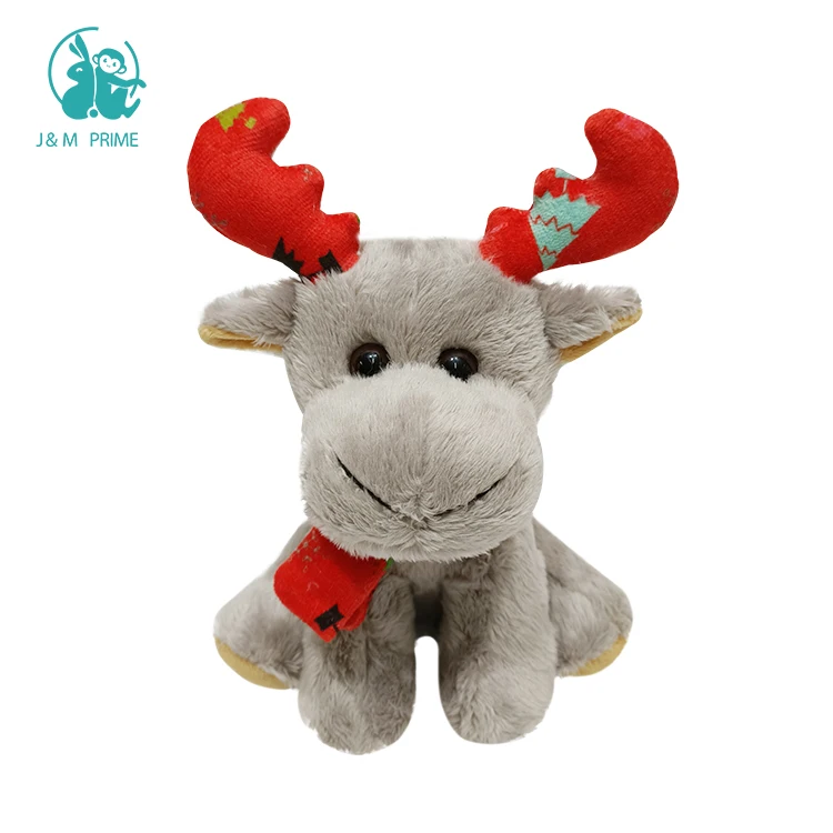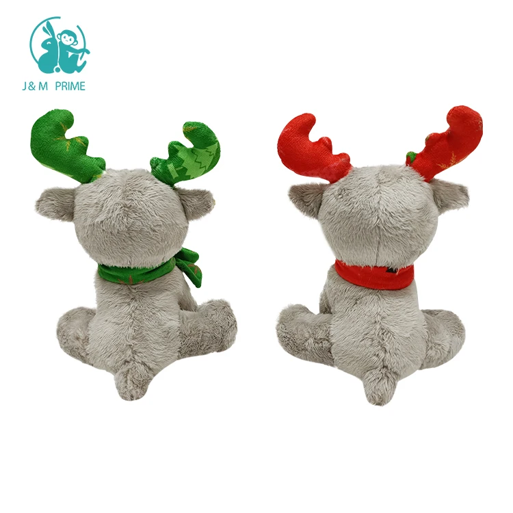 Custom Cute Stuffed Animal Christmas Soft Reindeer Deer Plush Toys With Red Scarf Embroider LOGO