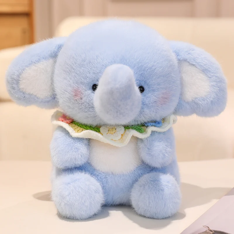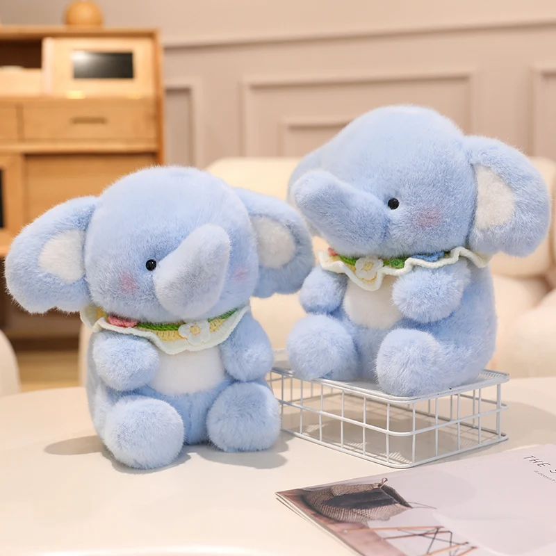 Happy Little Stuffed Blue Elephant Bib Cute PP Cotton Filling Plush Toy Decoration Companion Doll
