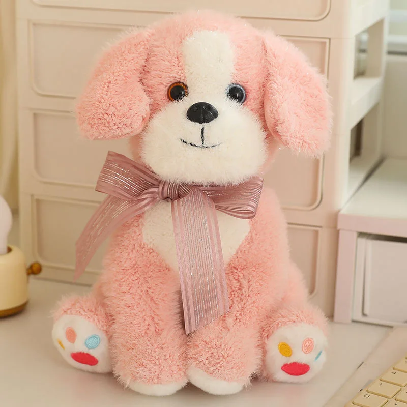 Yellow Pink Blue Super Soft Plush Puppy Toy Full-Filled and Non-Deformable Embroidered Dog Toy with PP Cotton Filling