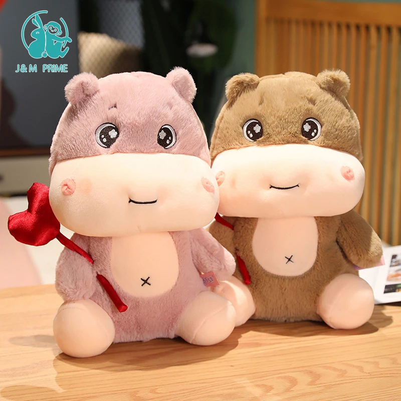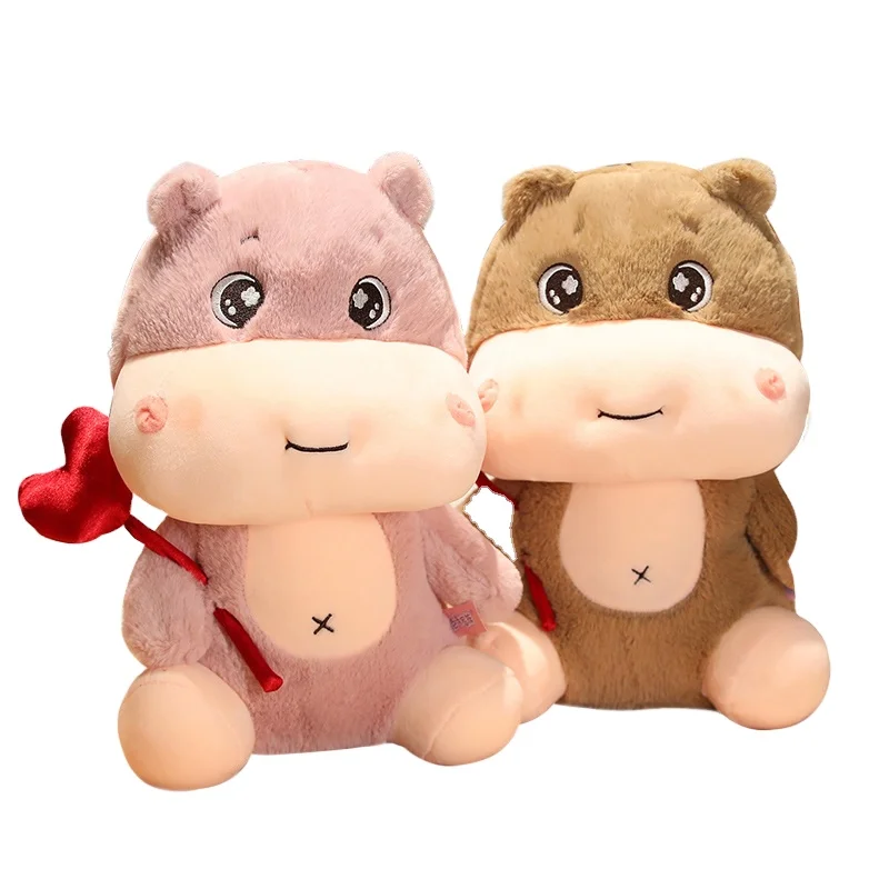 High Quality Pink Hippo Stuffed Toy Wholesale Valentine's Day Plush Gift with PP Cotton Filling