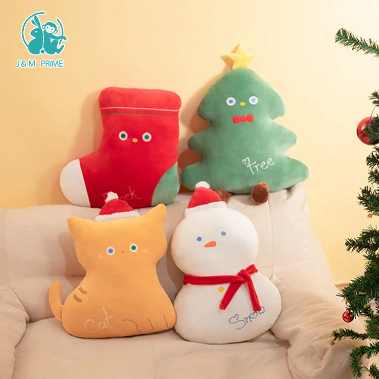 Christmas Gift Tree Snow Man Socks Cat Pillow Cushion Plush Toy PP Cotton Filled