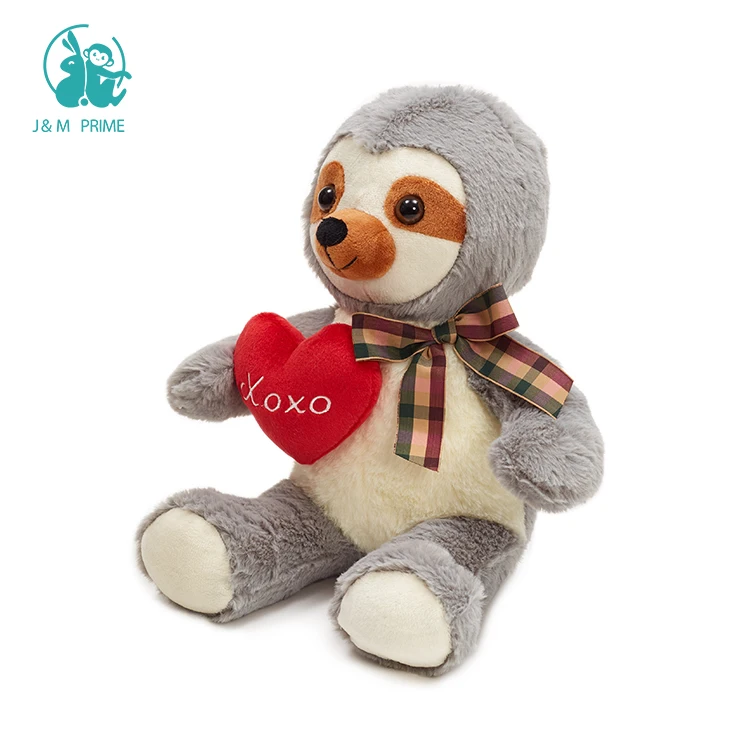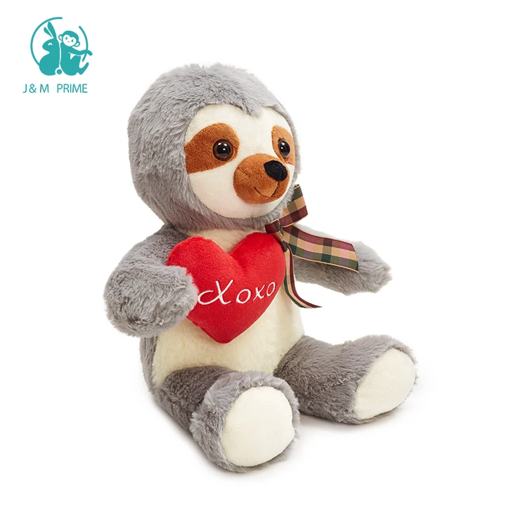 Customized Love Valentines PP Cotton Filled Plush Sloth Stuffed Animal with Heart