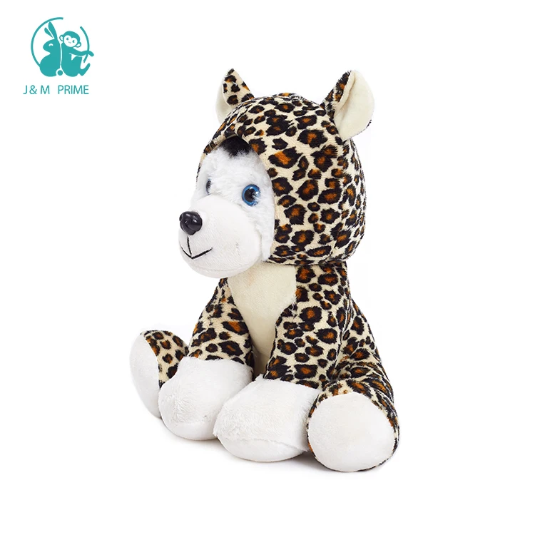 High Quality Customizable Cute Plush Husky Dog Toy with Leopard Hat Stuffed Soft PP Cotton Filled Promotional Gift