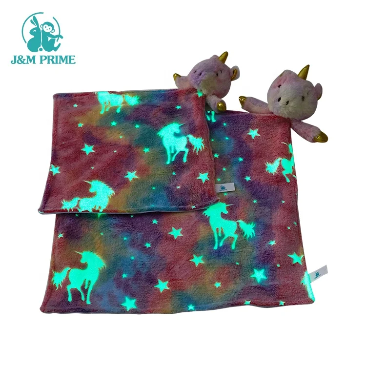 Rainbow Unicorn Glow in the Dark Flannel Fleece Throw Luminous Polar Blanket