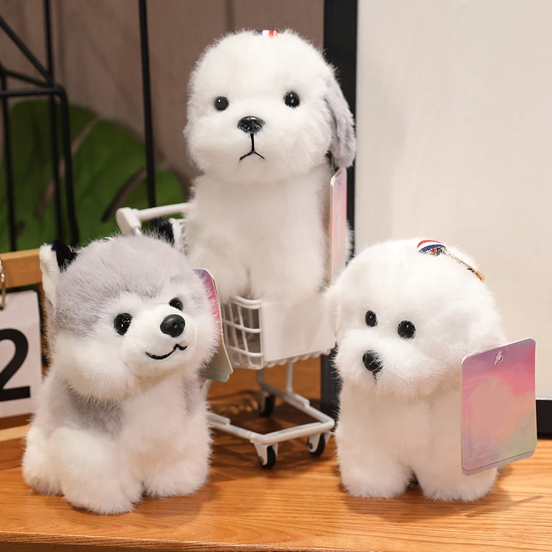 Simulation Plush Husky Keychain Toy Cuddly Mini Pomeranian Plush Dog Keychain Poodle Stuffed Dog Keychains Cuddly Bag Pendant