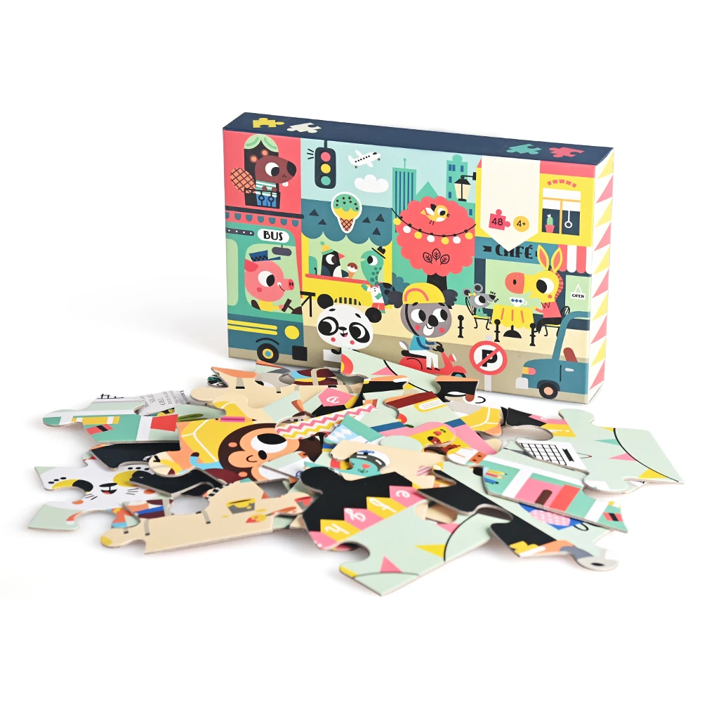 Children's Jigsaw Cartoon Animal Flat Paper 48 Pieces Gift Box DIY Toys Customized Wholesale Educational Jigsaw Puzzle