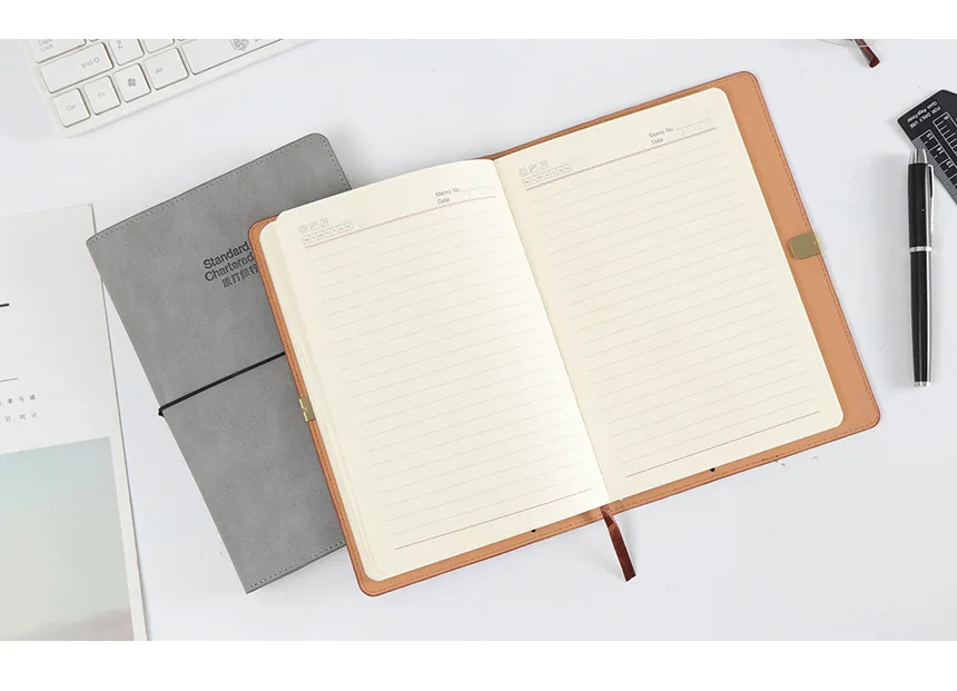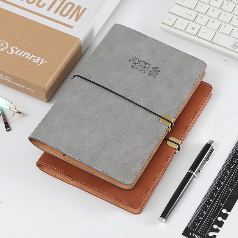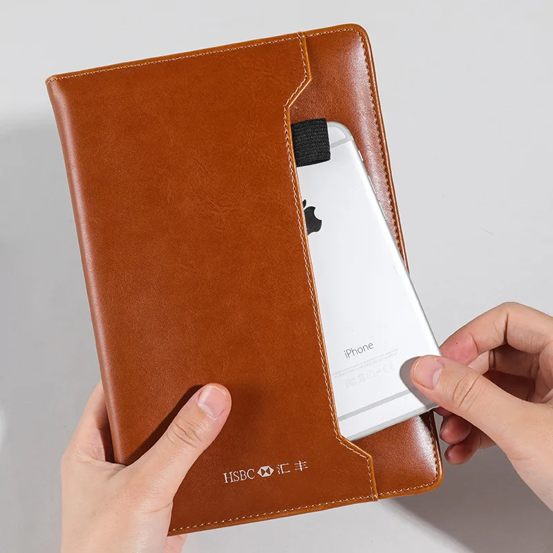 Custom Printing Soft Faux Pu Leather Notebook Pocket Folder Softcover Notebook with Pen Gift Set