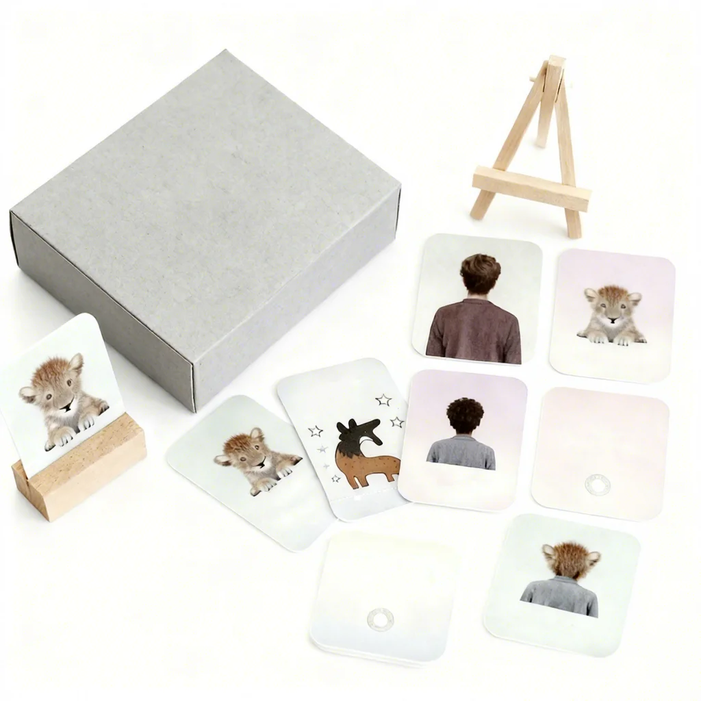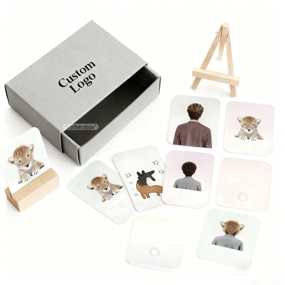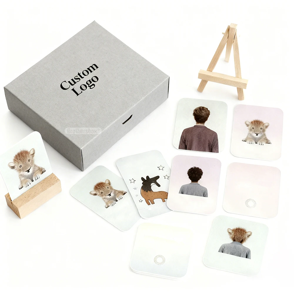 Custom Design OEM Printing Playing Question Eduction Flash Card Game Affirmation Cards With Wood Stand