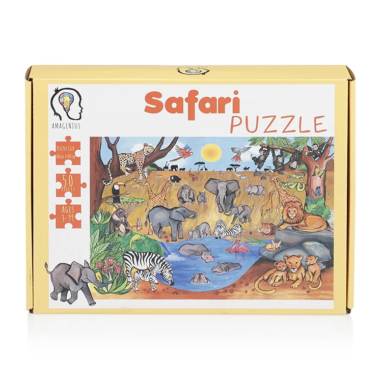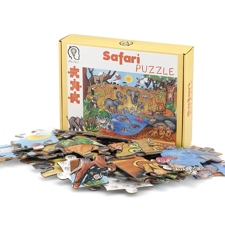 Custom Forest Animal Cartoon Picture Safari Puzzle 100/500/1000 Pieces Paper Jigsaw Puzzle for Kids