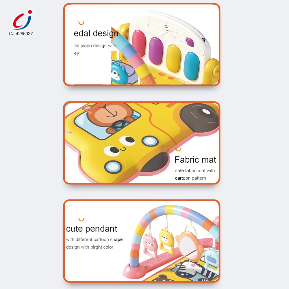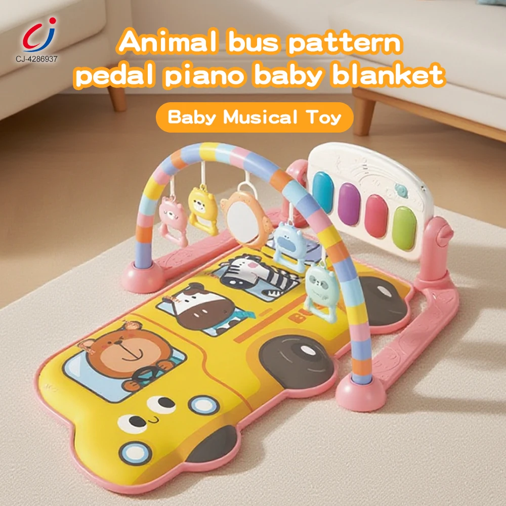 Chengji Montessori Early Educational Baby Play Toy Animal Bus Theme Design Baby Piano Multifunctional Play Gym Mat