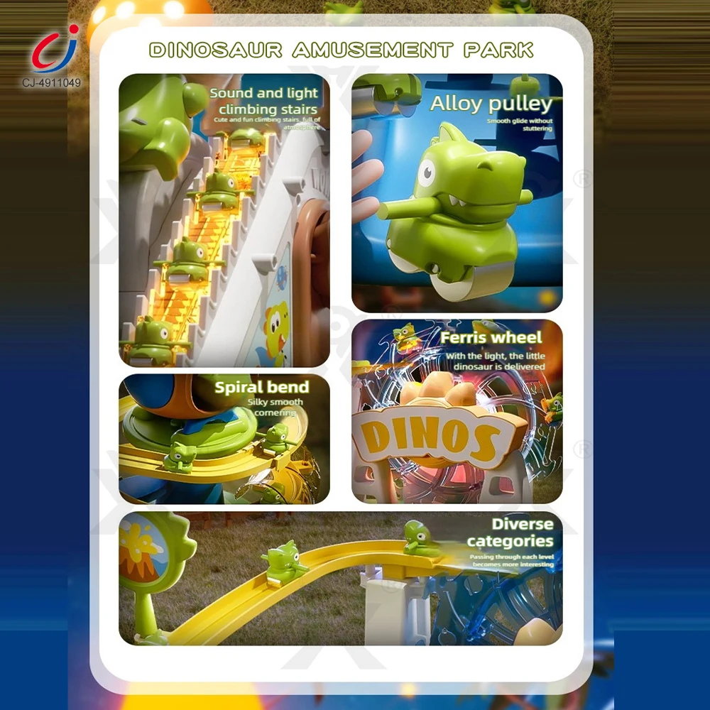 Chengji Toy Room Stairs Slide Diy Cartoon Dinosaur Stair Climbing Track Dinosaur Assembly Puzzle Fun Electric Slide Track Toy