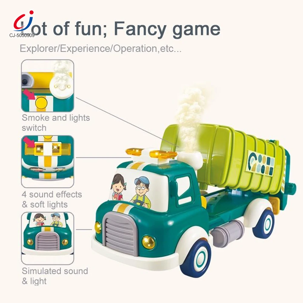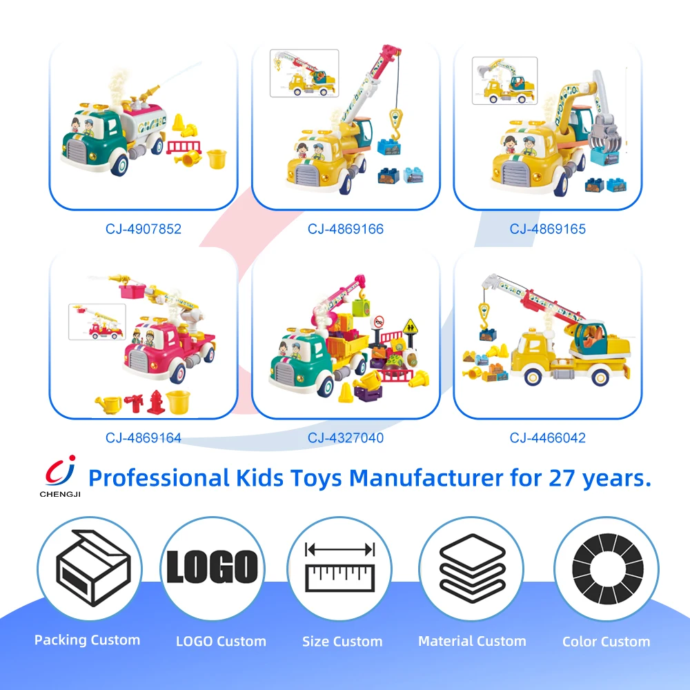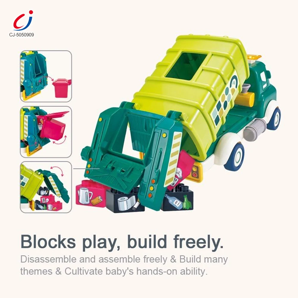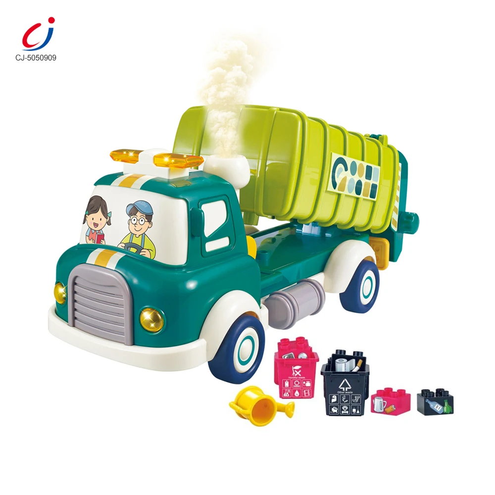 Chengji Blocks Model Building Toys Garbage Truck Light Sound Spray Pull Back Car Garbage Truck Building Blocks