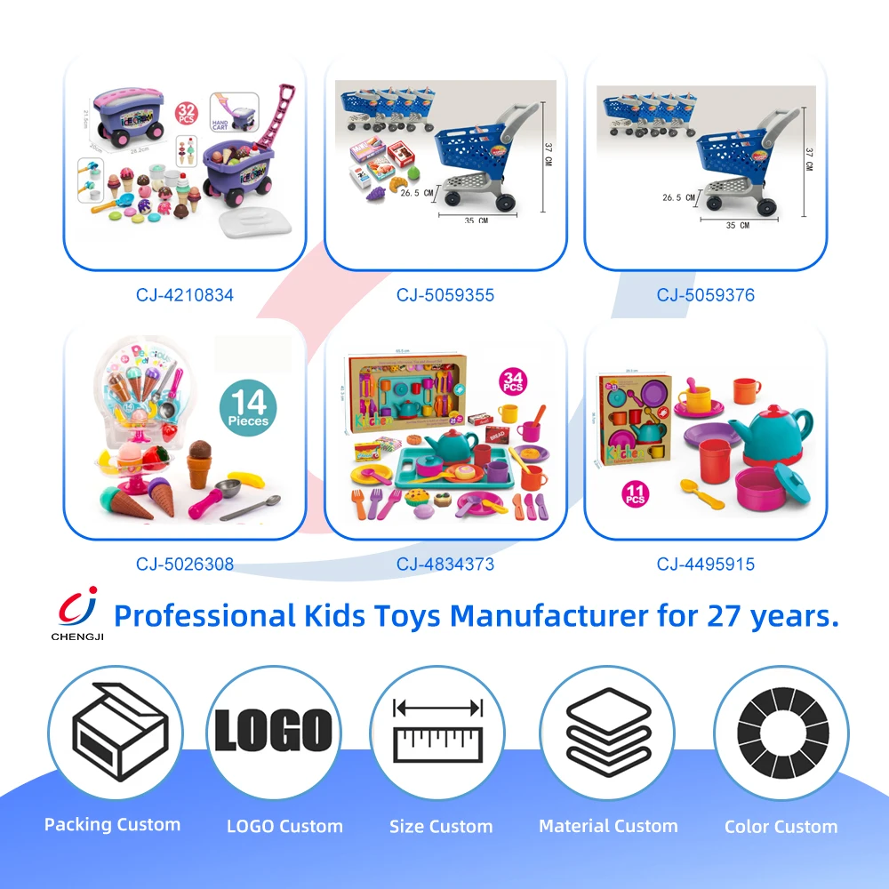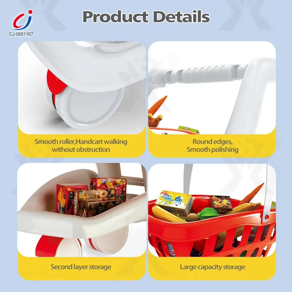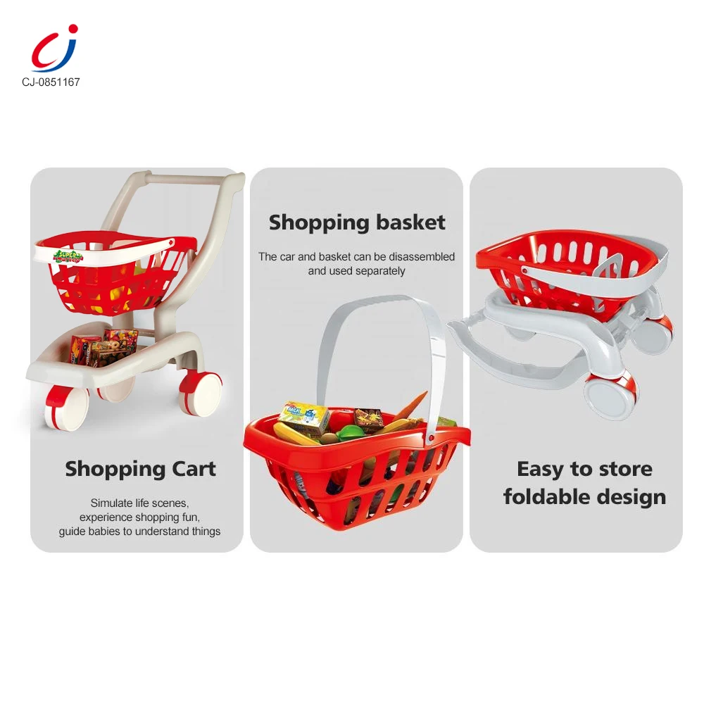 Chengji Happy Shopping Cart Toy Wholesale Supermarket Plastic Pretend Play House Kitchen Children Shopping Cart Toy with Food