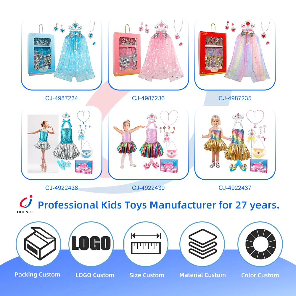 Chengji Kids Princesses Clothes Wholesale Christmas Cloak Crown Necklace Dress up Pretend Play Cosplay Costume Toys