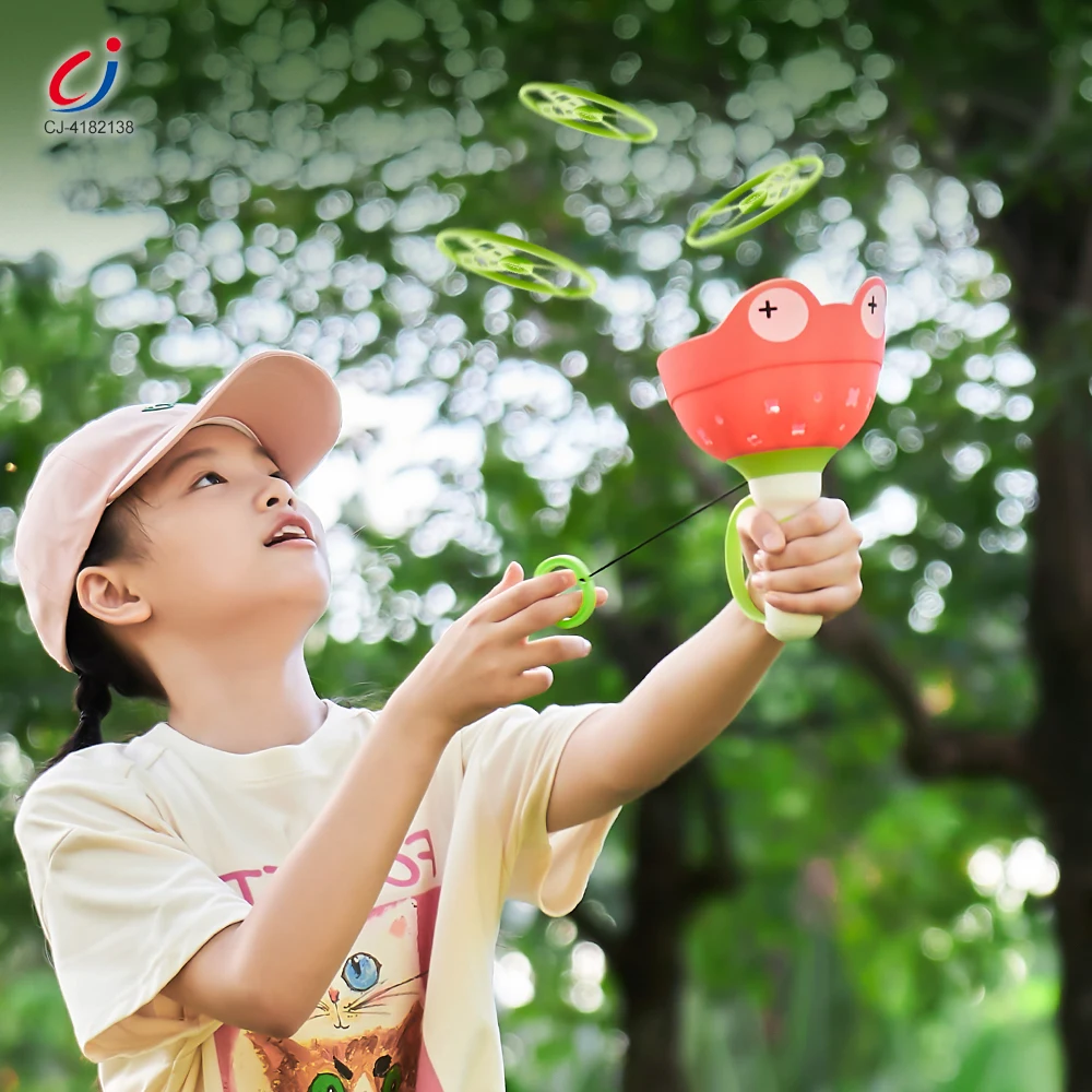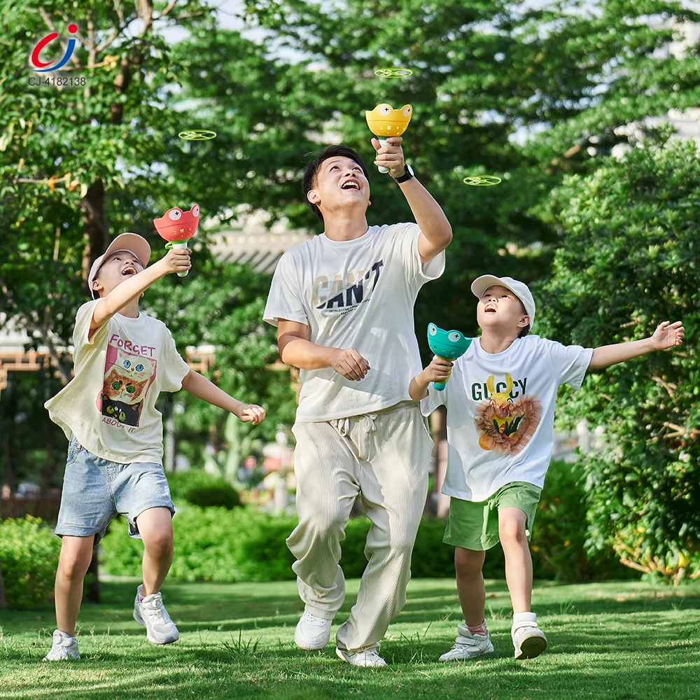 Chengji Flying Disk Toy Launcher Leisure Activities Pulling Line Cartoon Handheld Portable Frog Shooting Fun Sport Toys for Kids
