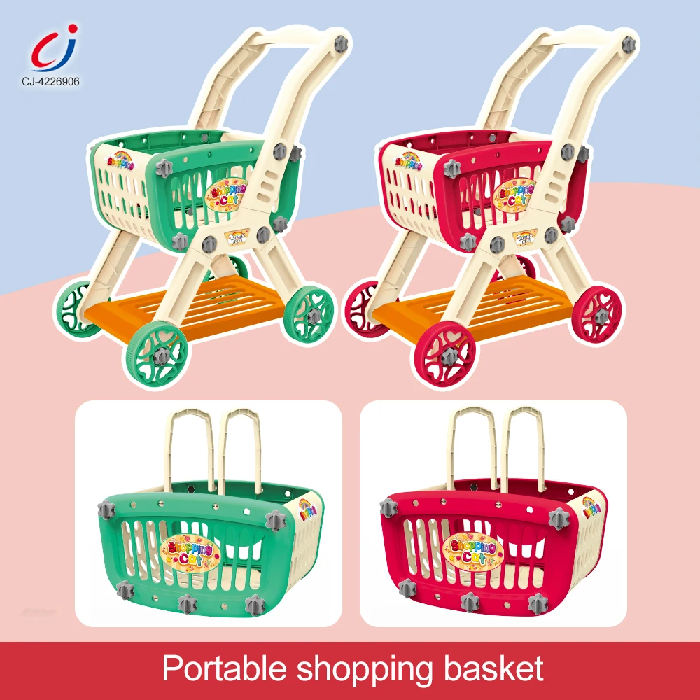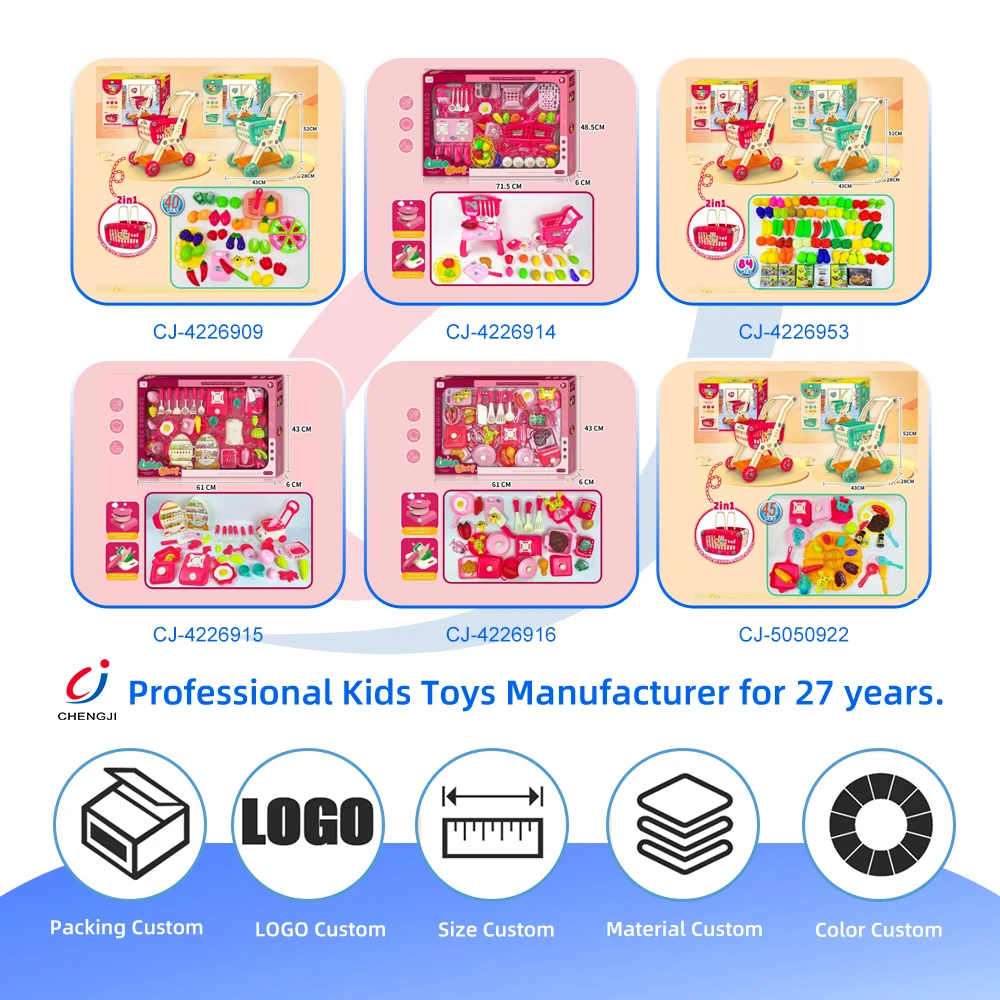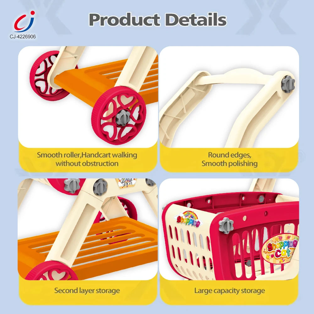Chengji Shopping Cart Toy Kids 2 in 1 Role Playing Children Pretend Play Trolley Early Education Supermarket Toy Shopping Cart
