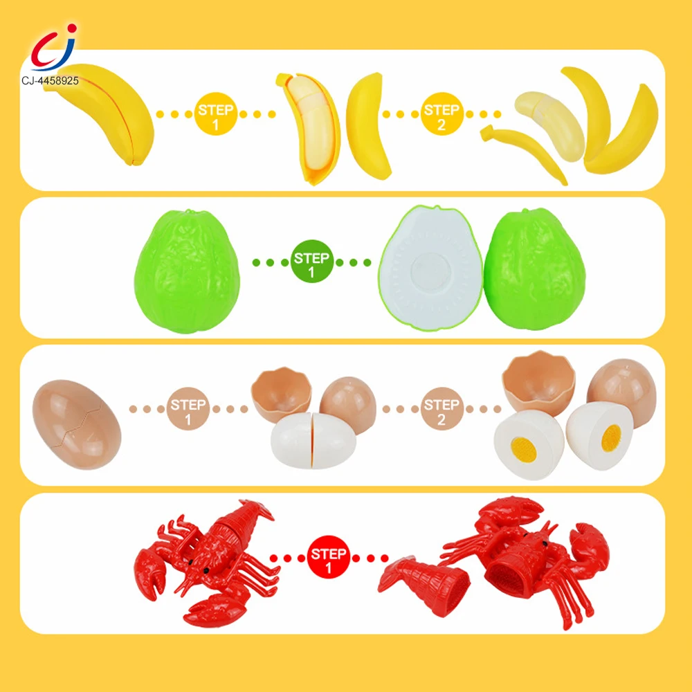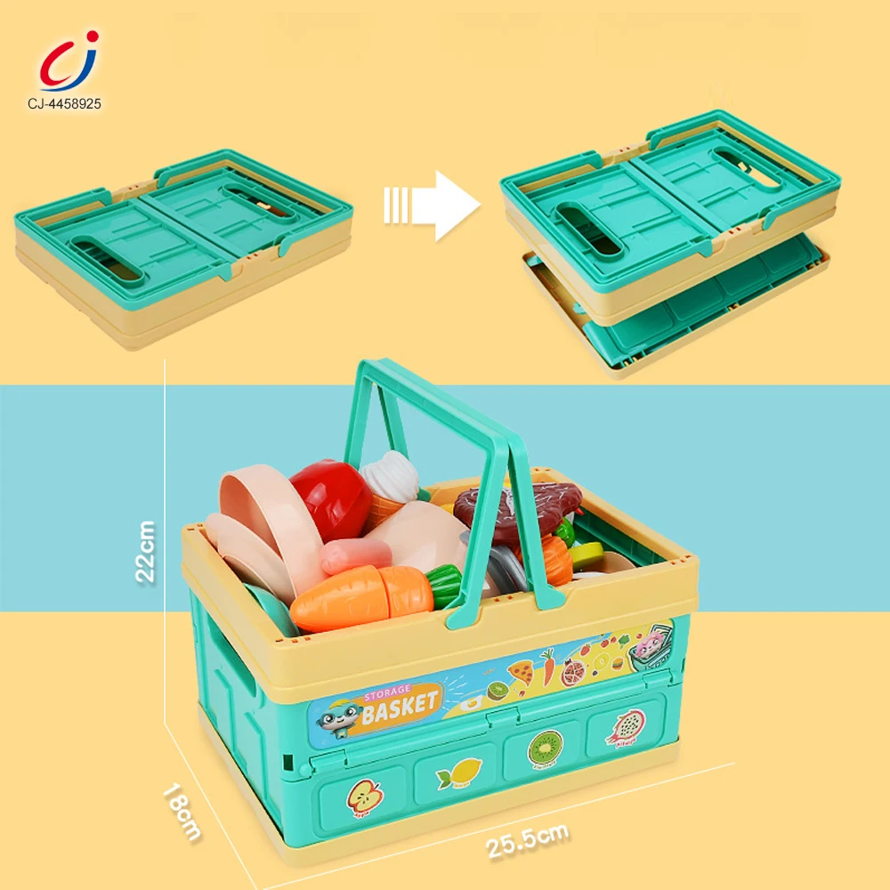 Chengji Diy Plastic Cutting Vegetables Toy Simulation Shopping Storage Basket Kitchen Cut Fruit Vegetable Food Toy