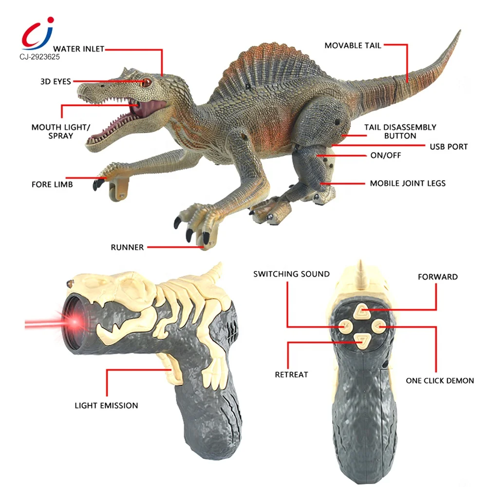 Chengji Spinosaurus Toy Walking Robot Dinosaur Rc Toys 2 in 1 Light Chasing Spray 5ch Remote Infrared Control Dinosaur