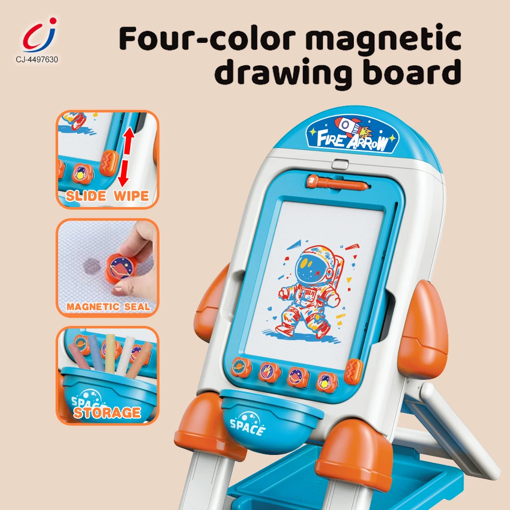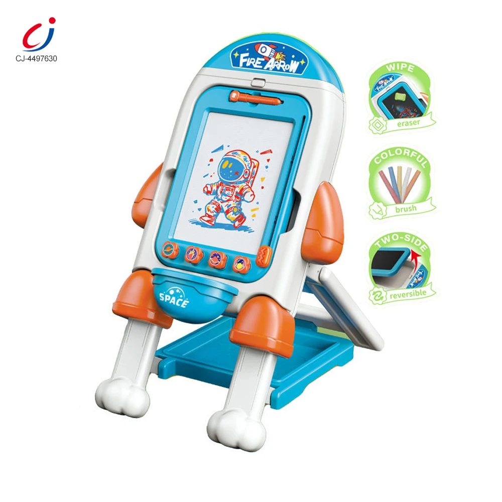 Chengji Cartoon Magnetic Drawing Bord 2 in 1Double-Sided Magnetic Rocket Talented Painter Double Sided Drawing Board