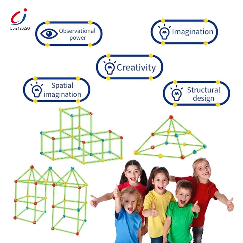 Chengji Glow Fort Building Kit 128pcs Kids Educational Stem Creative Diy 3d Castle Tent Construction Den Fort Toys