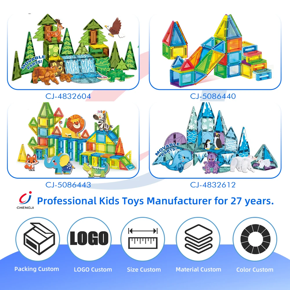 Chengji Kids Toys Building Block Creative Education Cartoon Sea Animal Theme Colorful Ocean Magnet Block Tiles Toy