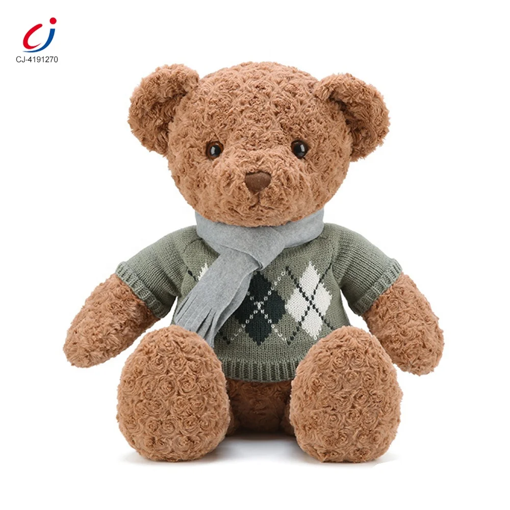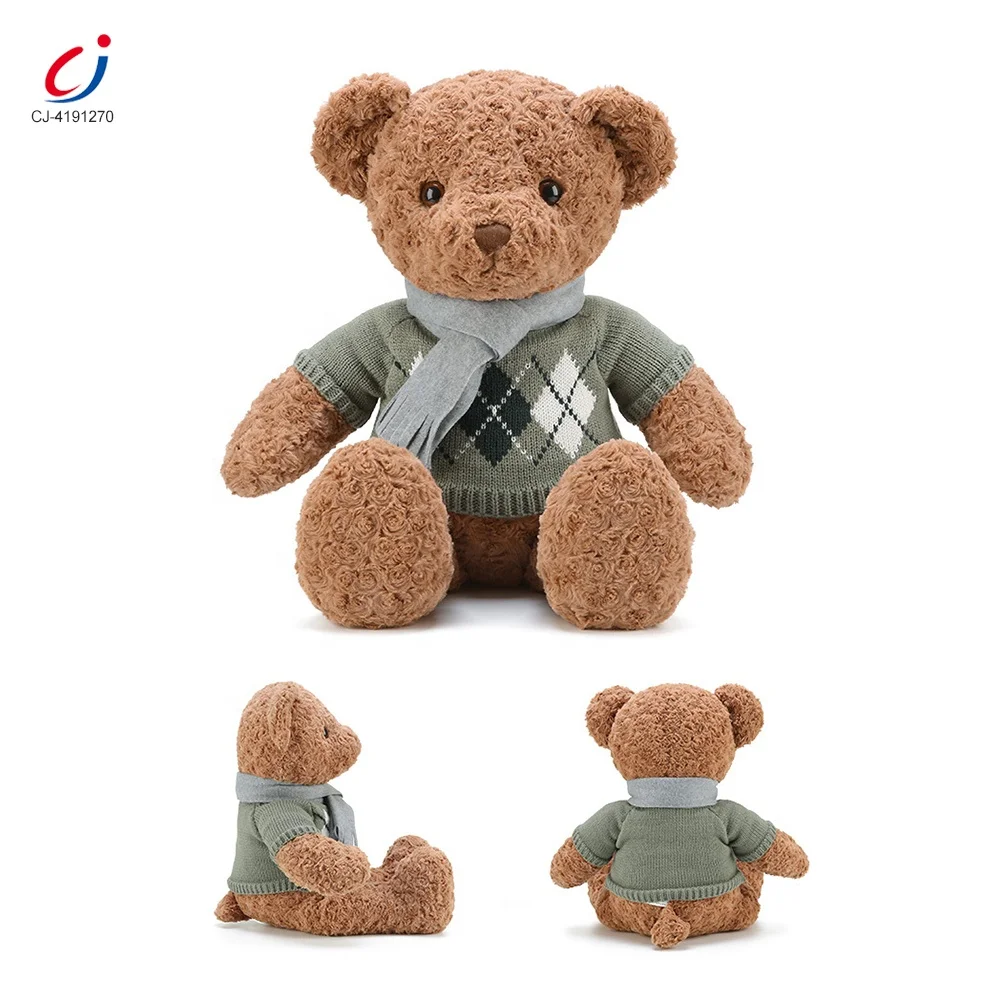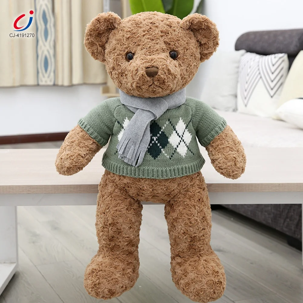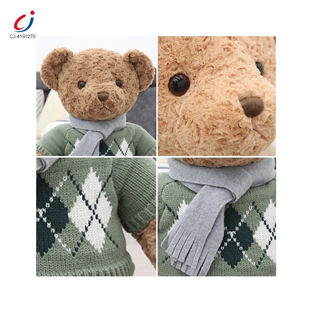 Chengji Wholesale Hot Sale 50cm Lovely Stuffed Animal Play Set Green Scarf Sweater Bear Plush Toy for Kids