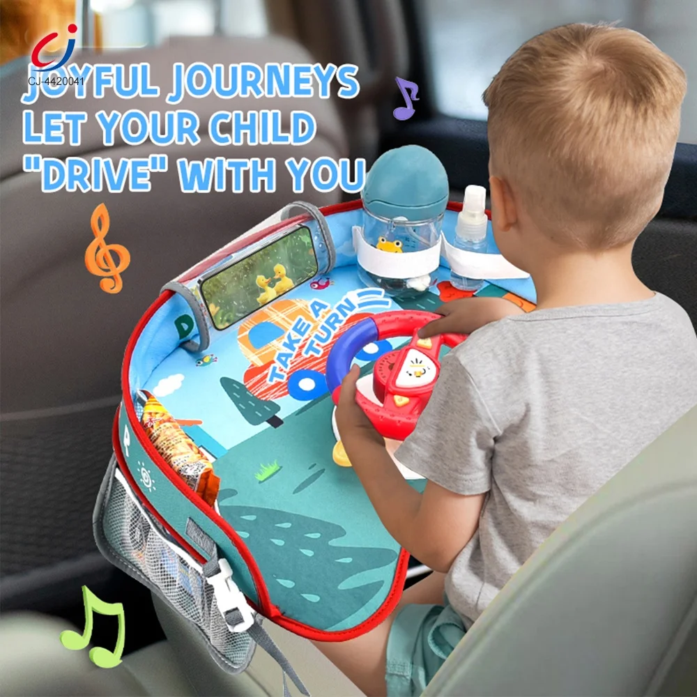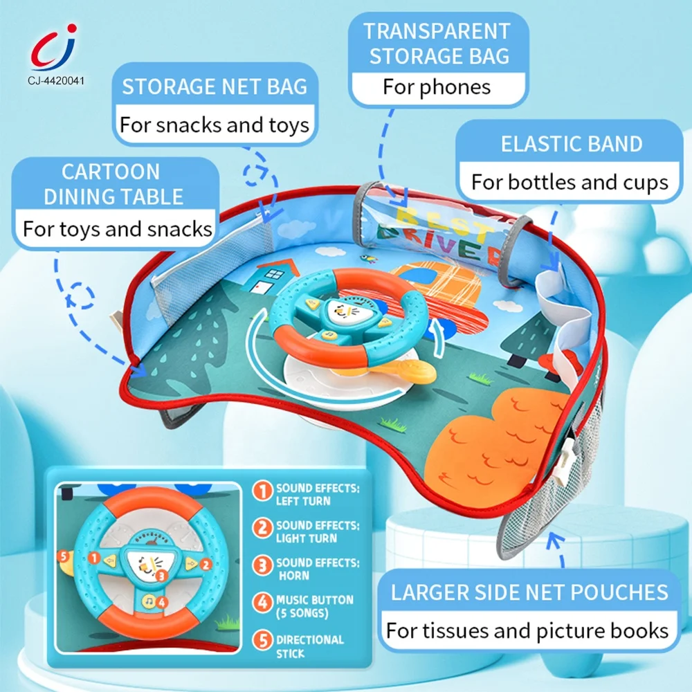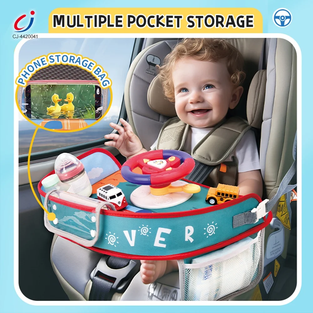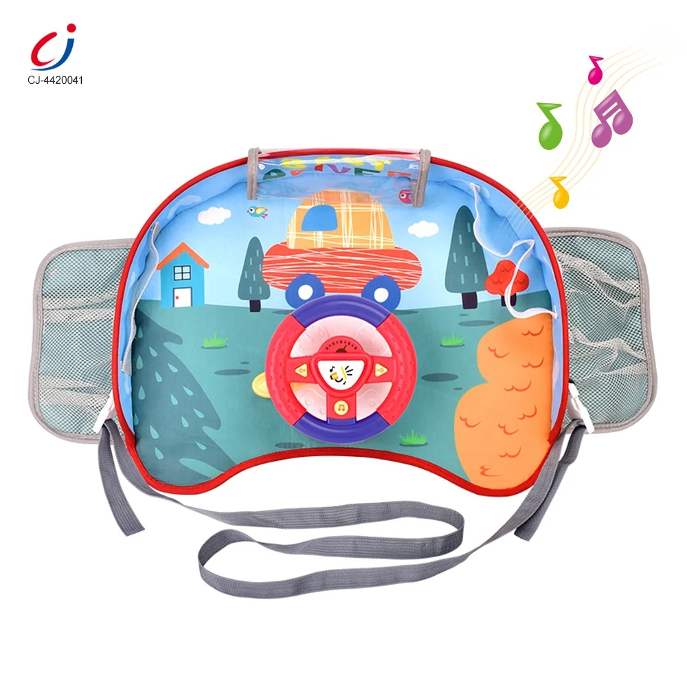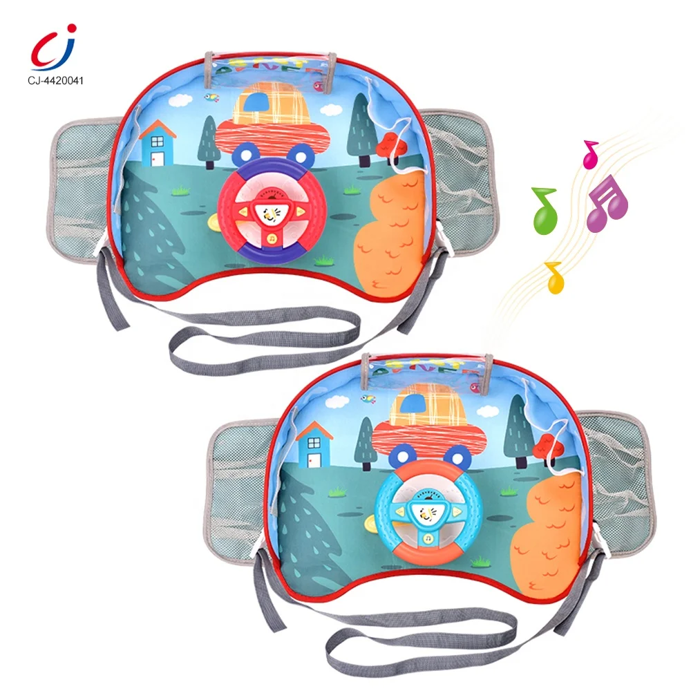 Chengji Car Steering Wheel Safety Seat Tray Green Toys Simulation Driving Game Steering Wheel Toy for Stroller