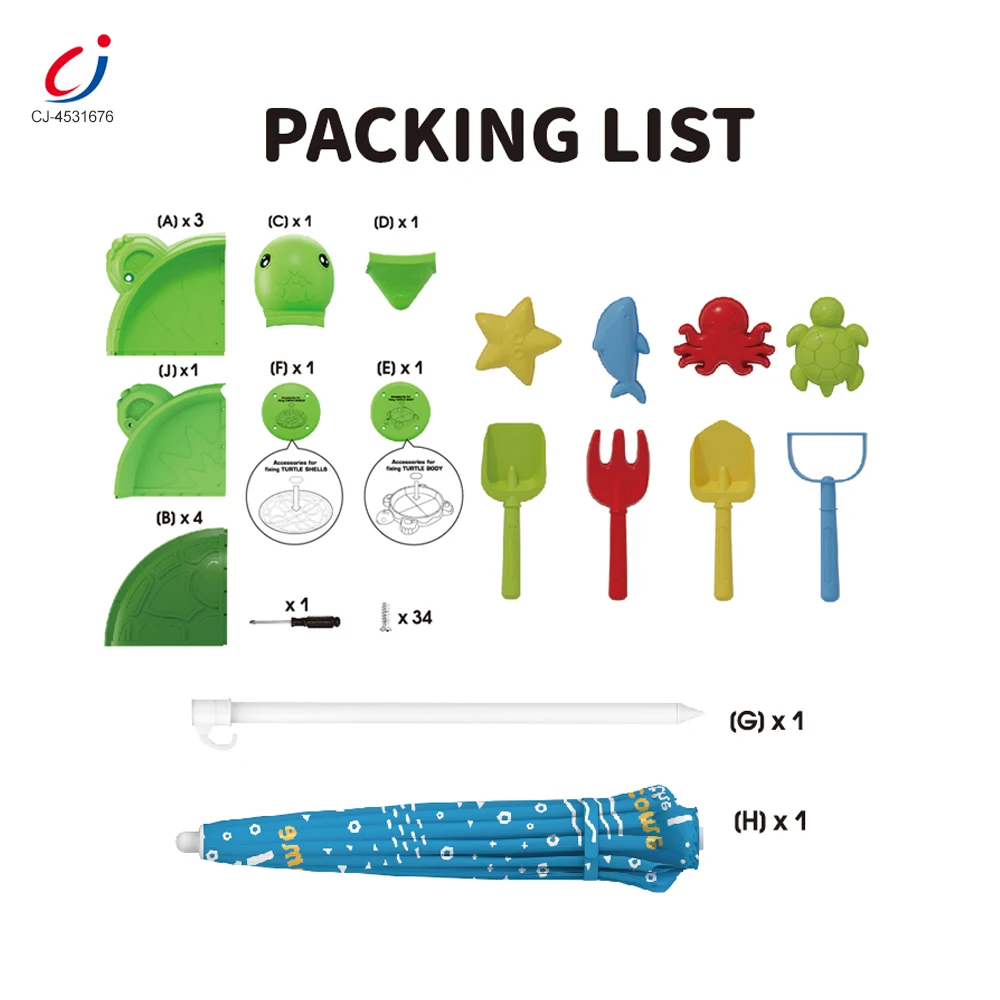 Chengji Beach Shovel Sand Toys Sets Cartoon Shape Beach Umbrella Sand Molds Plastic Turtle Beach Toy