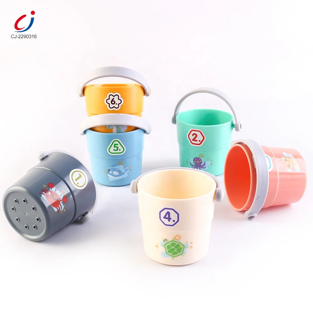 Chengji New Style Baby Bathroom Water Toys Kids Stacking Cups Buckets Baby Play Water Bath Stacking Cups Toys for Bath